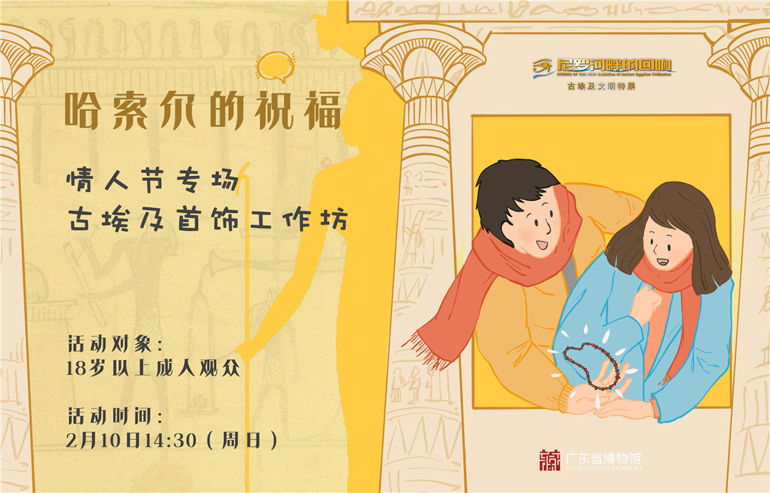 “芭蕉树下,沉沉的枝头 弯到了我隐秘的花园 这些高耸的友人 渐渐爬上你梦的高度 我的良人,我就是你心所爱的人 是你守护的园中最初的花蕾……” 传说中这是古埃及人的一段情诗,热恋中的他们常将满腔热情借诗高歌。除了情诗,古埃及人们还如何表达爱意?象形文字的“我爱你”怎么写?让我们一同学习“古埃及式”的爱情,亲手为另一半制作首饰,一起感受“尼罗河的爱恋”吧!