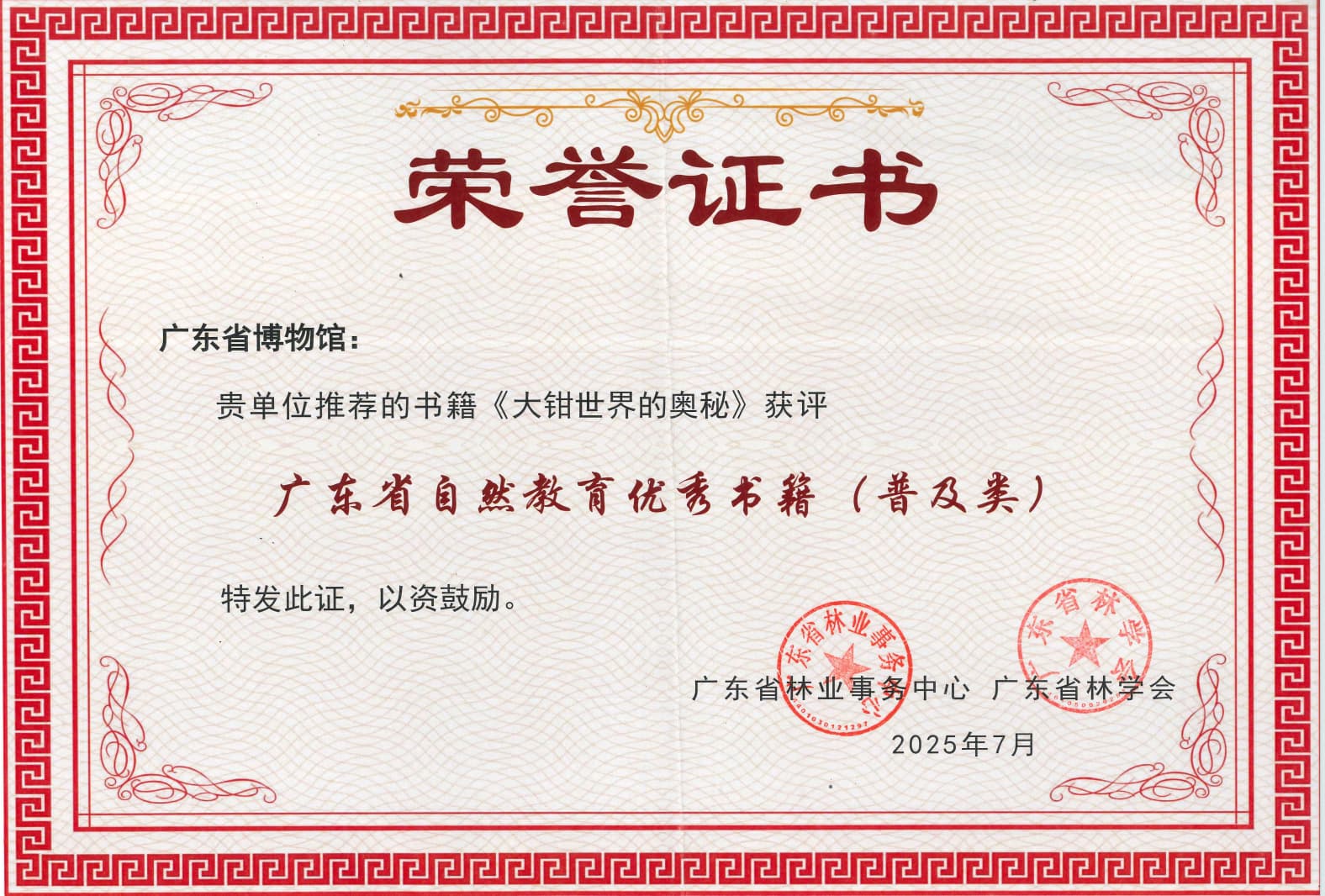 近日,广东省林业事务中心、广东省林学会组织开展评选广东省自然教育优秀书籍,广东省博物馆《广东省博物馆藏品大系动植物卷》《大钳世界的奥秘》入选首批广东省自然教育优秀书籍。