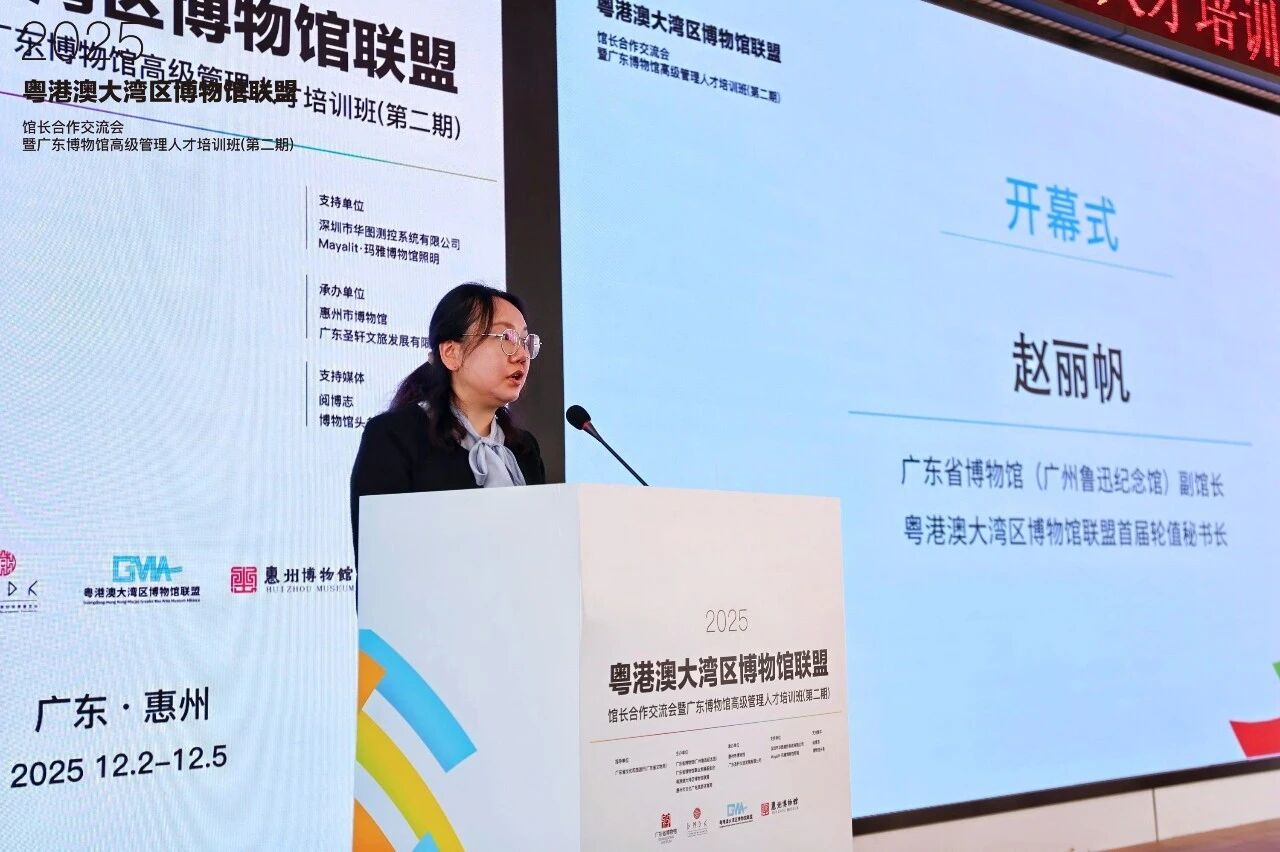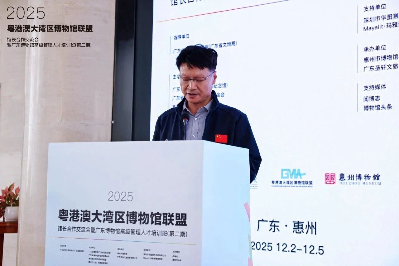 12月3日,由广东省文化和旅游厅(广东省文物局)指导,广东省博物馆、广东省博物馆事业发展基金会、粤港澳大湾区博物馆联盟、惠州市文化广电旅游体育局共同主办,惠州市博物馆、广东圣轩文旅发展有限公司承办的“粤港澳大湾区博物馆联盟2025年馆长合作交流会暨广东博物馆高级管理人才培训班(第二期)开幕式”在惠州顺利举行。