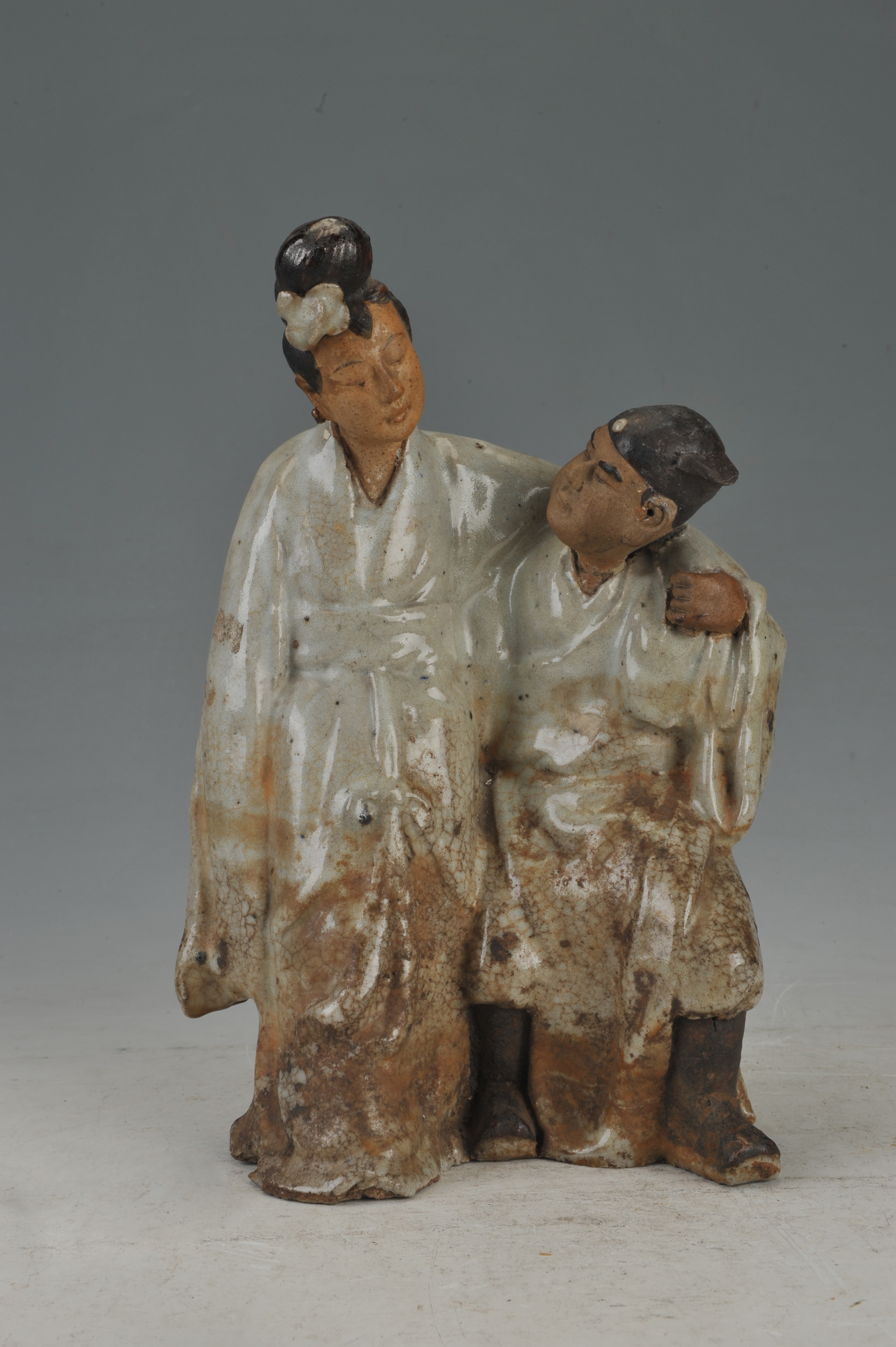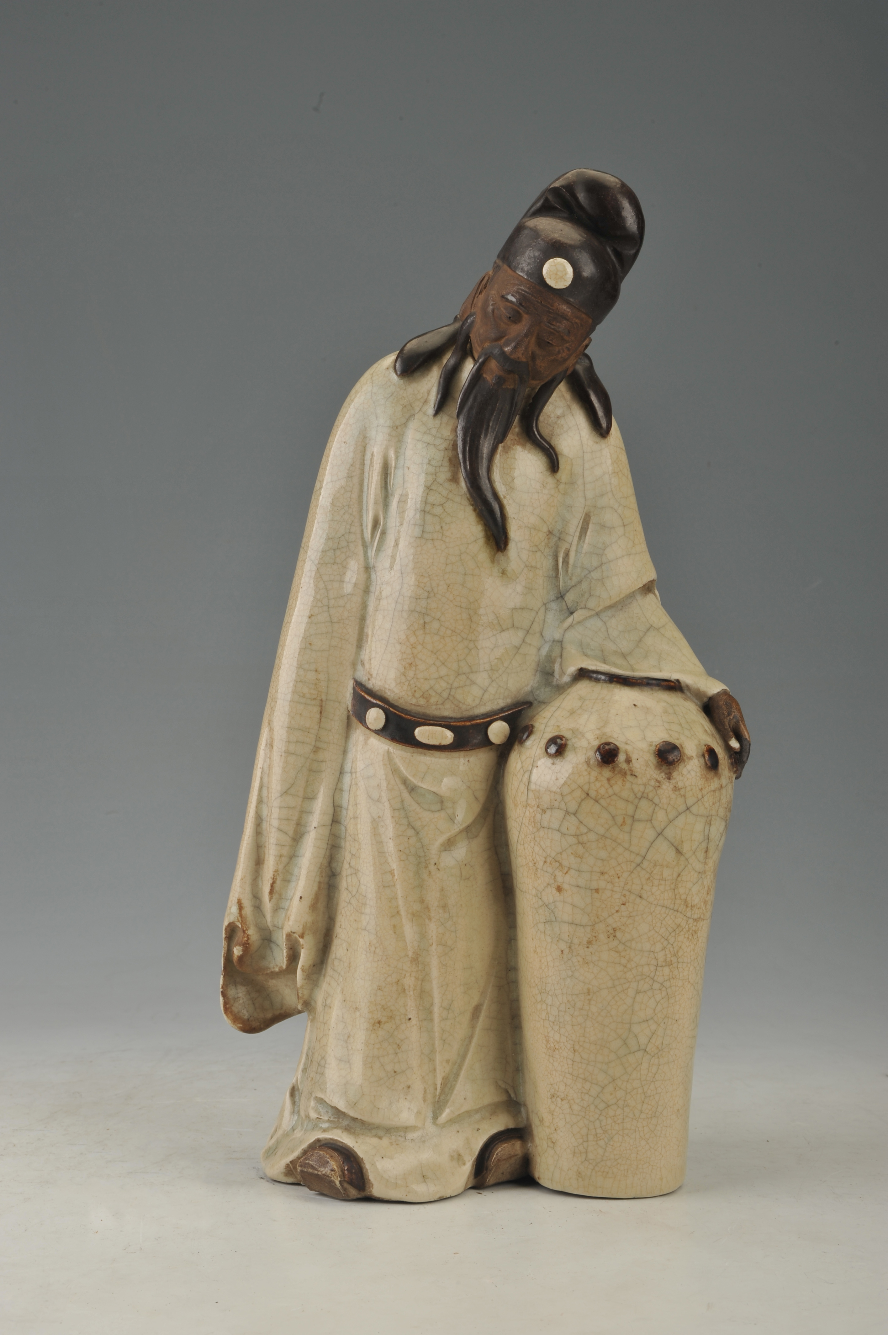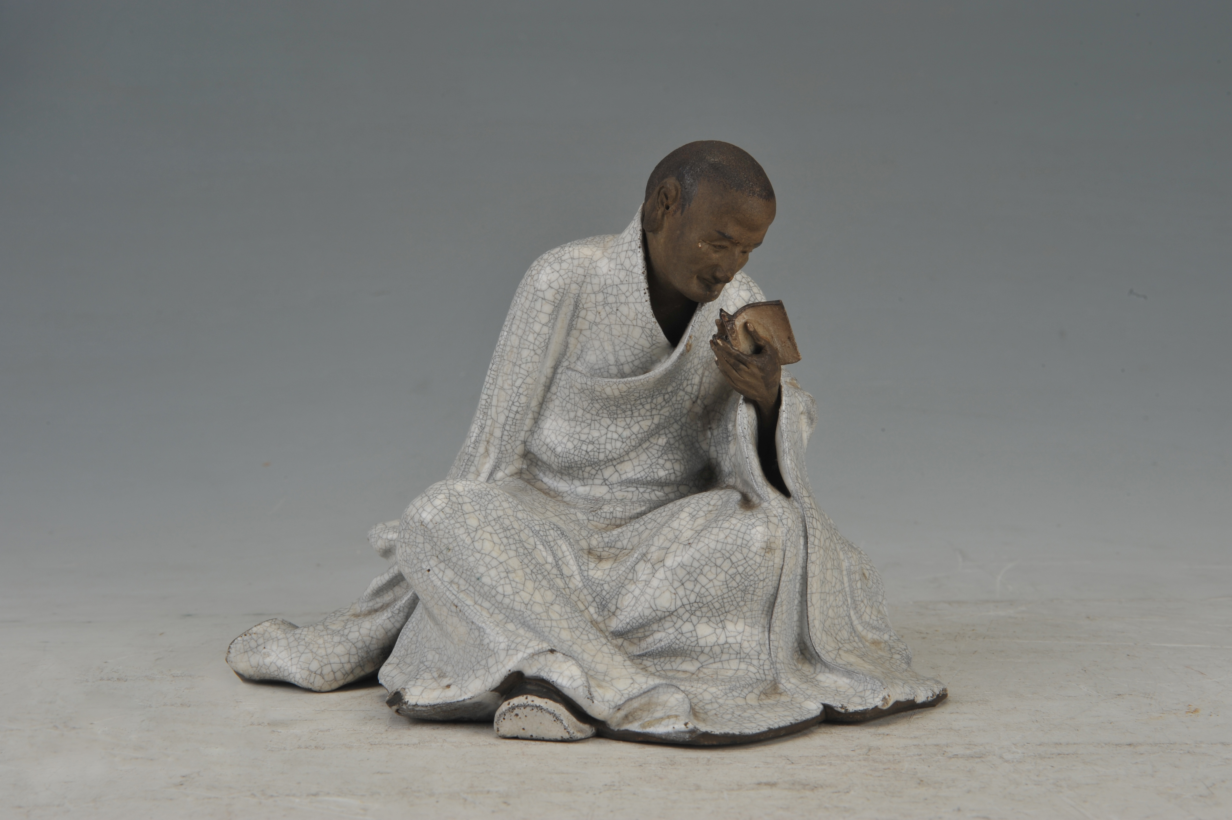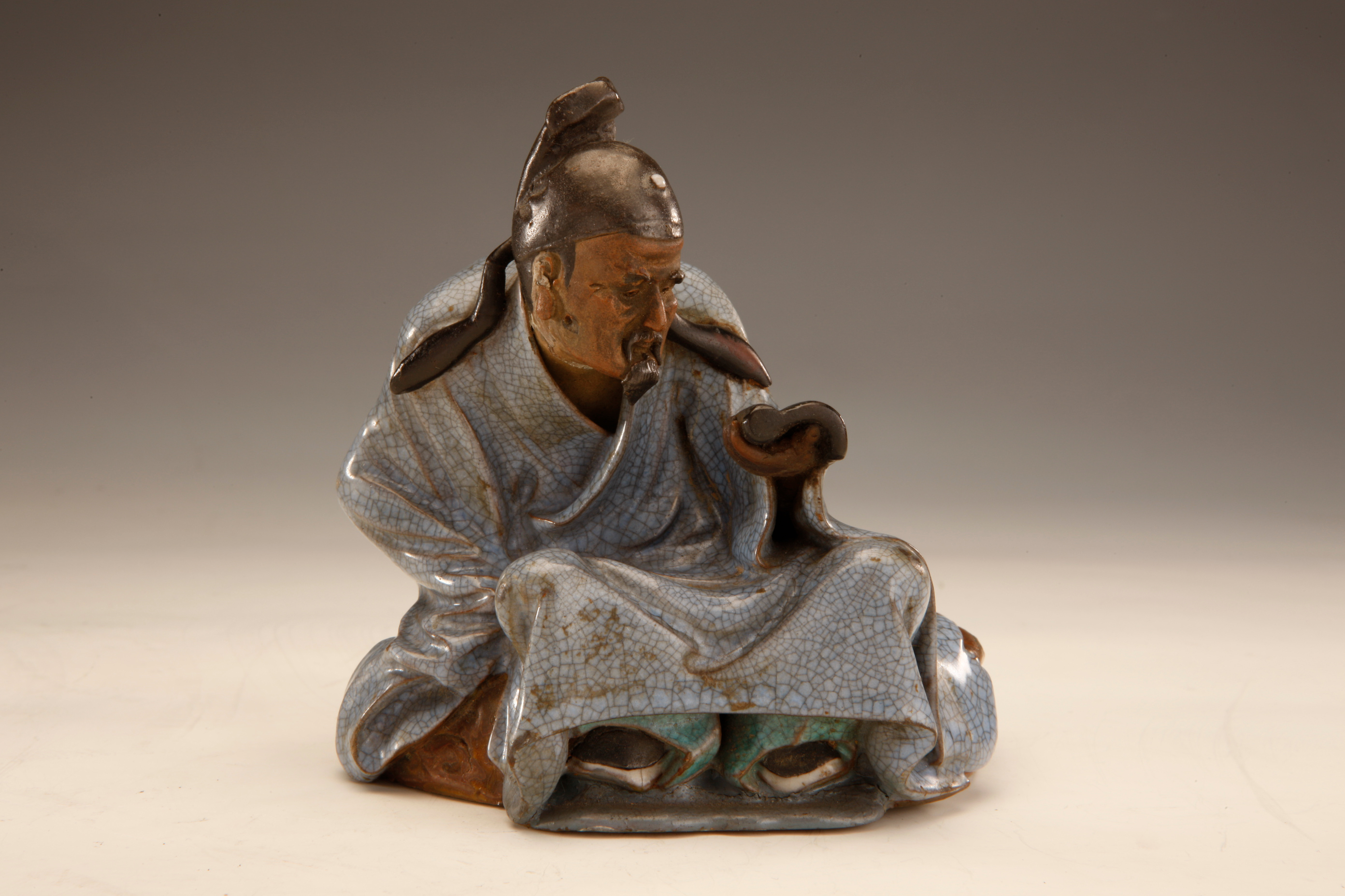 名称:现代石湾开片釉读书人像