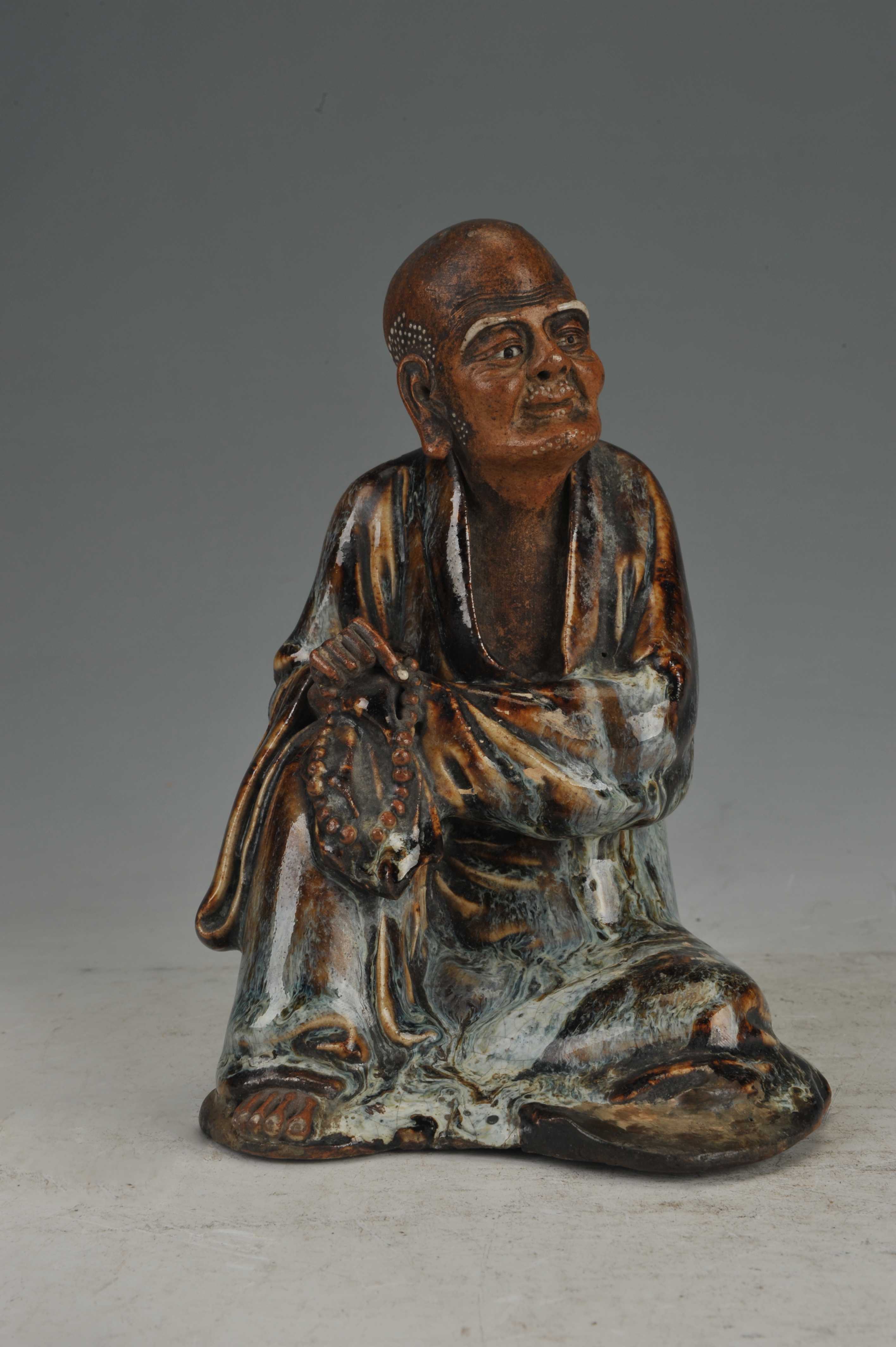 名称:现代石湾窑变釉念珠罗汉