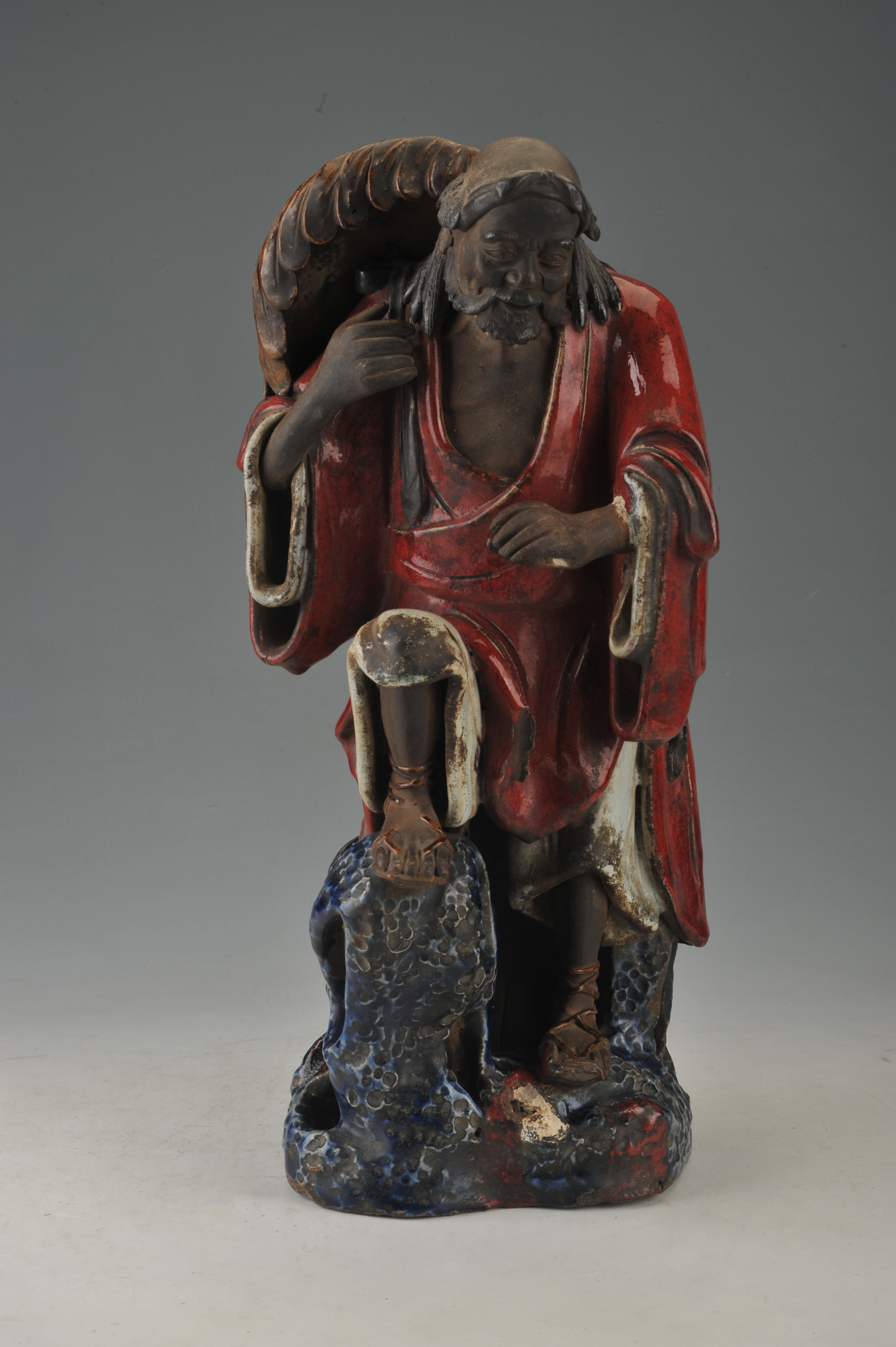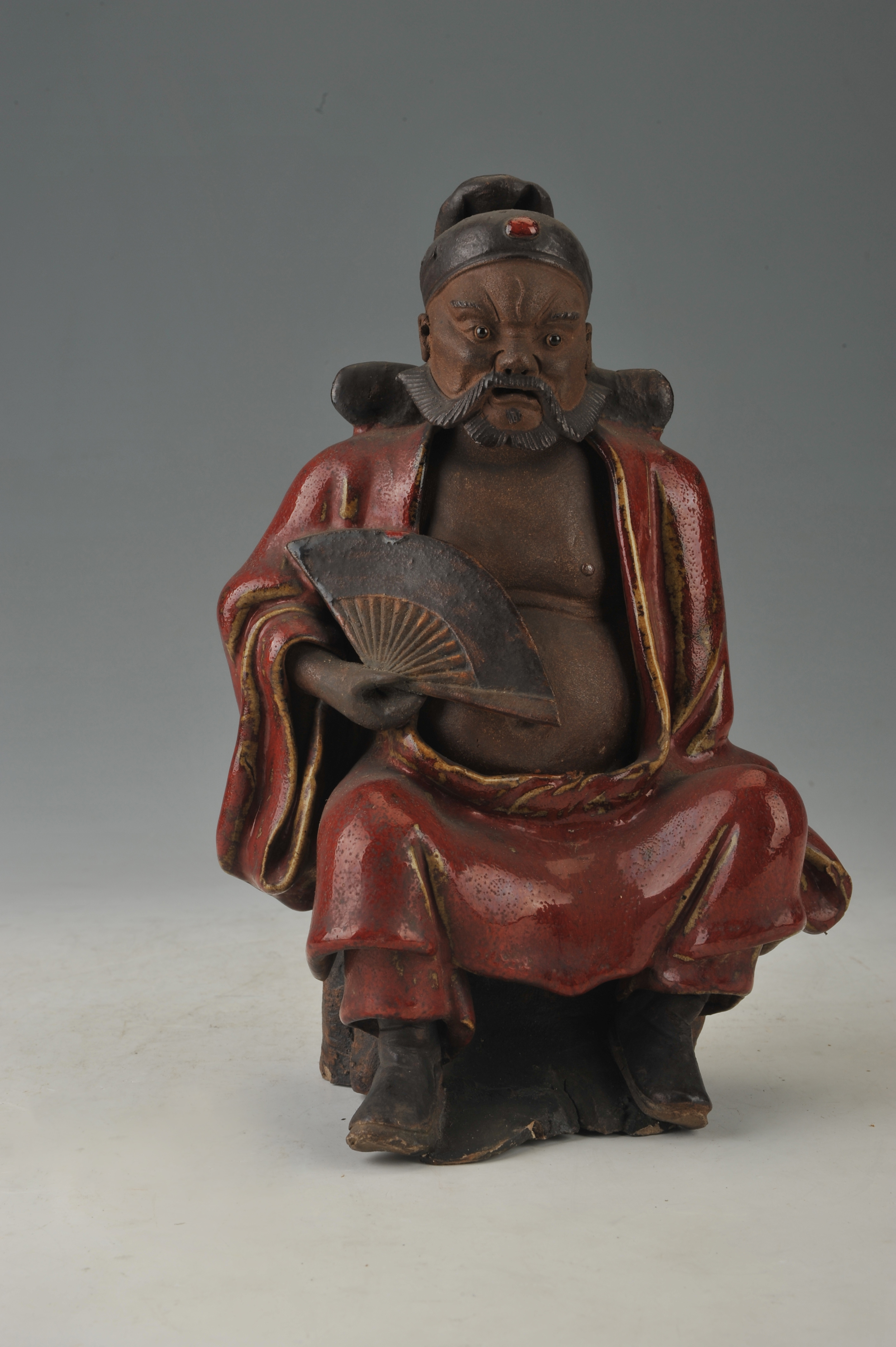 名称:清石湾窑石榴红釉钟馗像