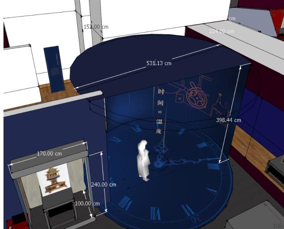 “广钟内部结构沉浸式投影”展项采用沉浸式多视角展示,在4面墙面及地面5个面上显示各自不同的画面,并可显示的组合大画面达到沉浸式效果。