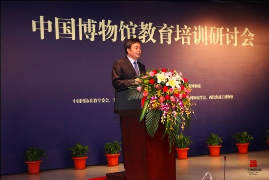 2012年12月11—13日,中国博物馆教育培训研讨会在我馆隆重举行。此次研讨会由中国博物馆协会、广东省文物局、美国史密森国家博物馆主办,中国博协社教专委会、美国驻广州总领事馆、广东省博物馆、广东省文物博物馆学会、西汉南越王博物馆共同承办,金大陆展览公司、广东省文物保护基金会协办。国家文物局副局长、中国博物馆协会理事长宋新潮先生,广东省文化厅党组成员、广东省文物局局长苏桂芬女士、美国驻广州总领事馆文化领事康若珊女士出席了开班仪式并致辞。来自全国各地博物馆主管宣教的馆领导和宣教部门负责人、省内部分博物馆及港澳地区的同行共100余人参加了此次培训。