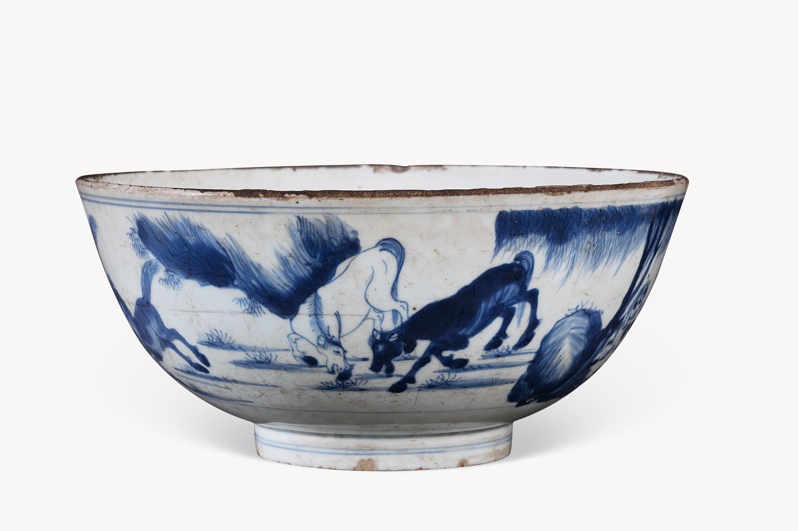 清青花八骏大碗