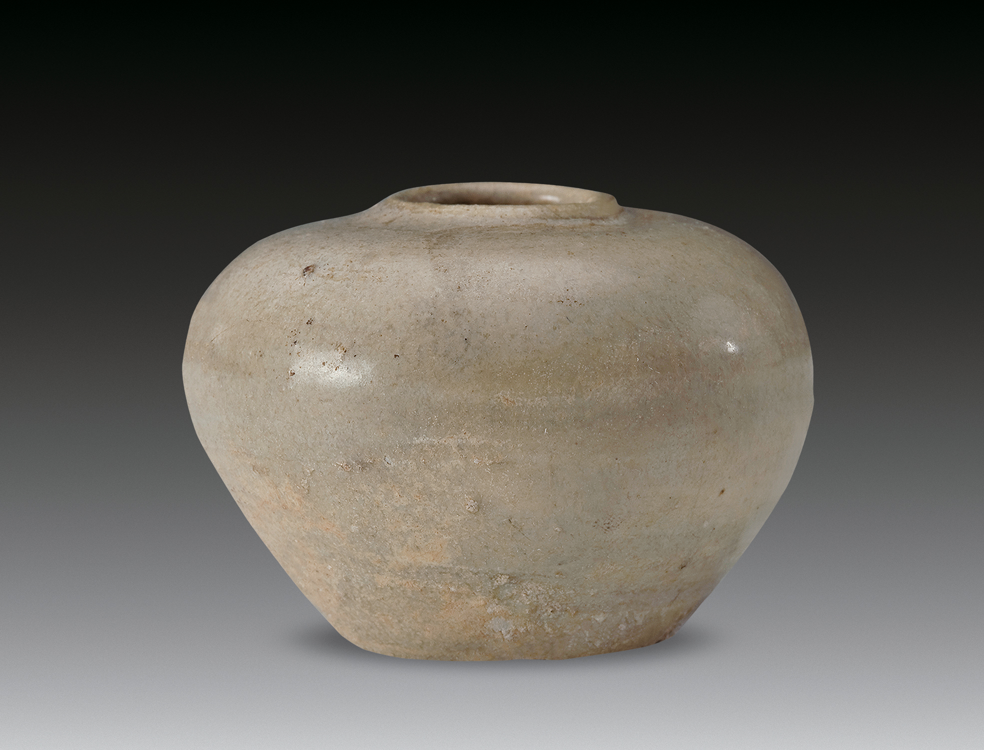 圆唇,敛口,丰肩,鼓腹,平底。外壁施青釉,釉面光润。