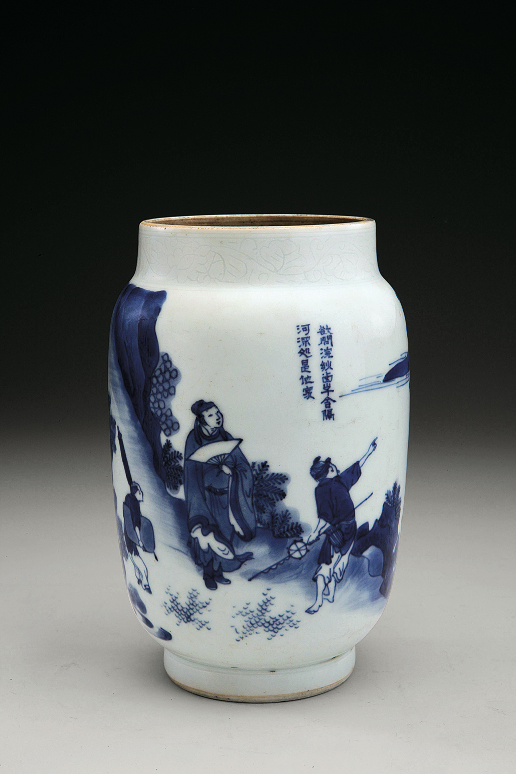 清雍正青花人物罐