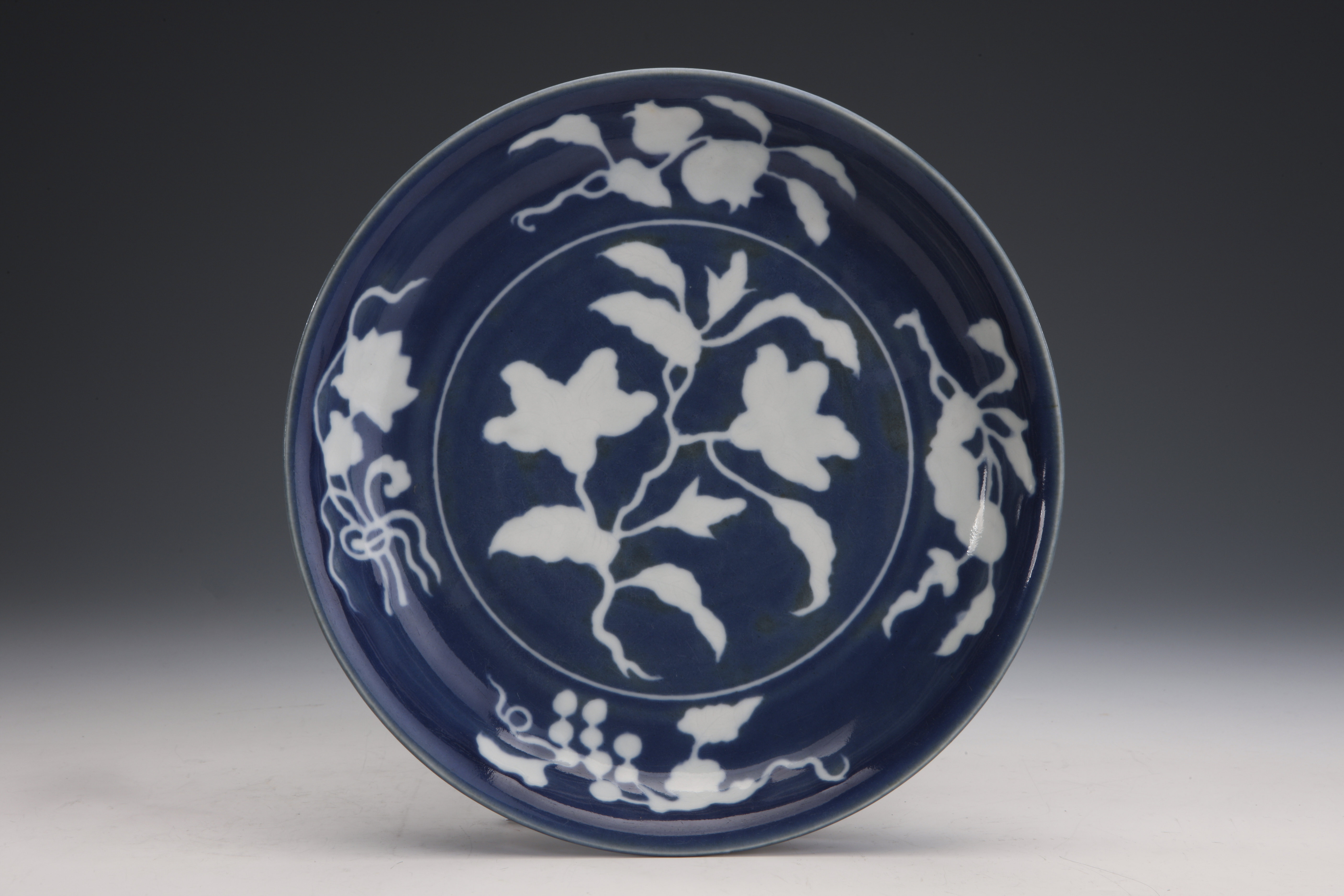 明宣德款蓝地白花大盘