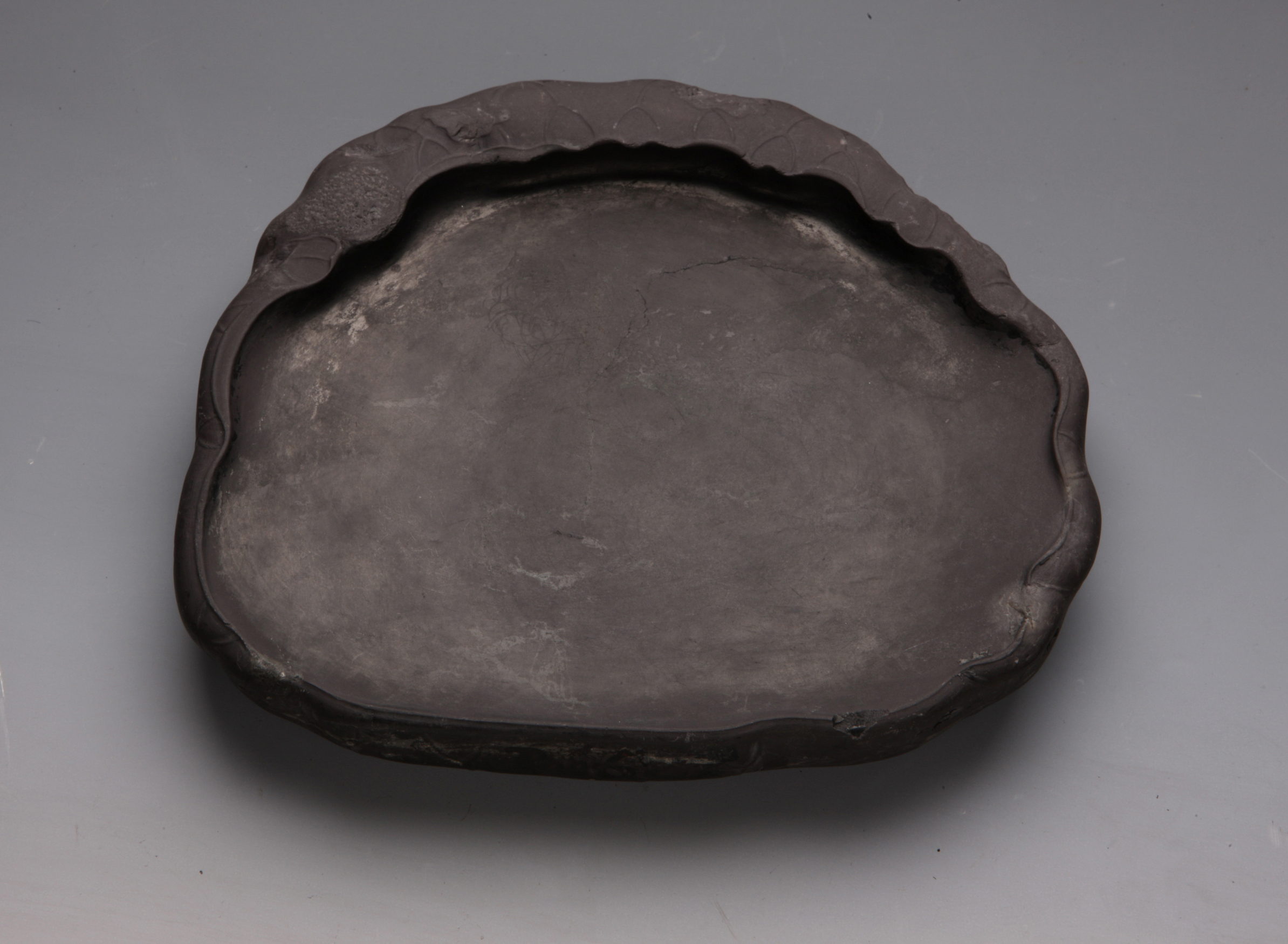 - 名称: 清乾隆荷叶形雕花边石砚(居巢墨砚)