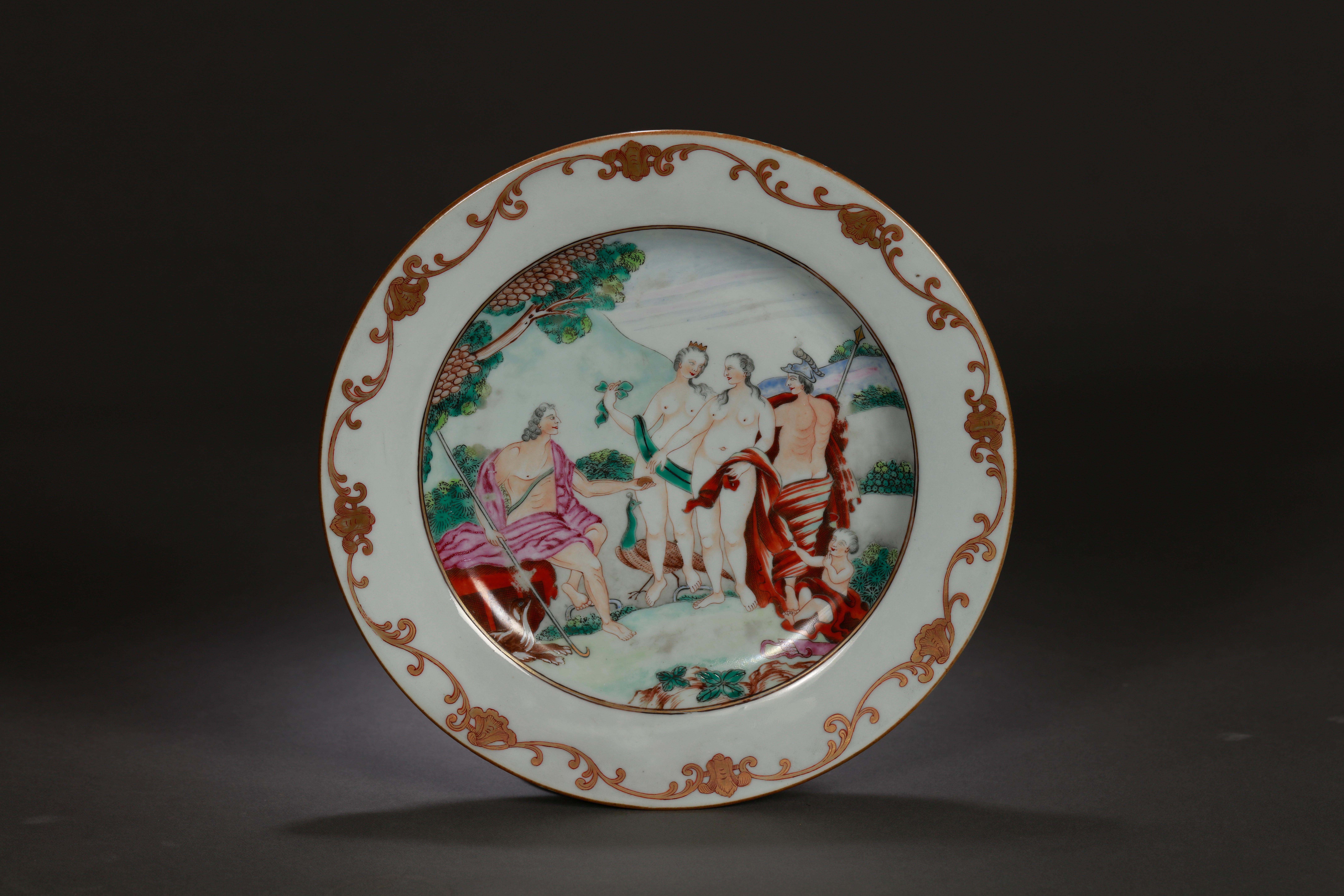 - 名称: 清乾隆广彩描金“帕里斯的审判”图瓷盘
