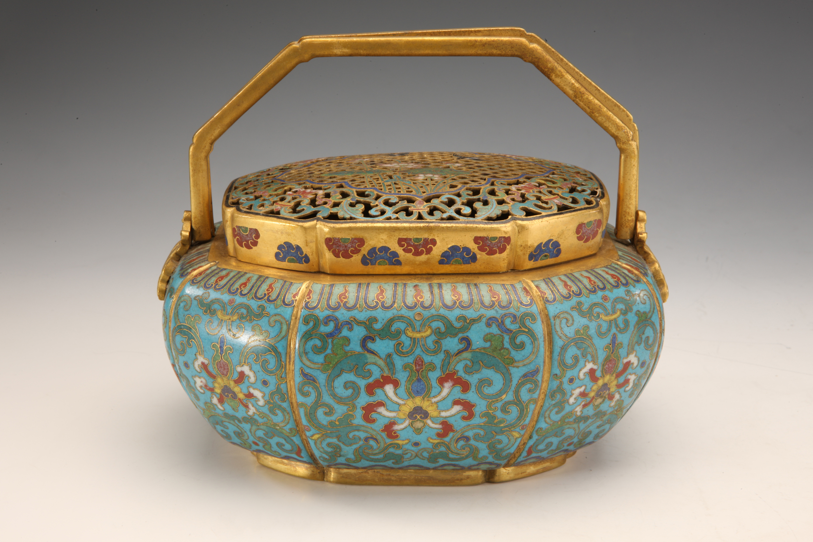 - 名称: 清中期铜胎掐丝珐琅花卉铜板提盒