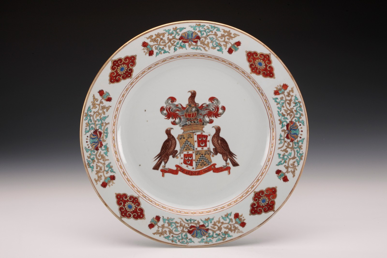 清乾隆广彩英国萨里郡黑斯尔米尔镇镇长徽章纹盘