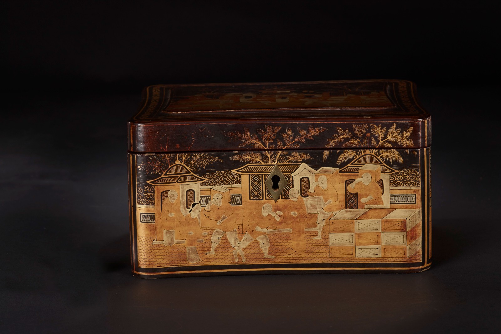 十九世纪黑漆描金茶叶盒