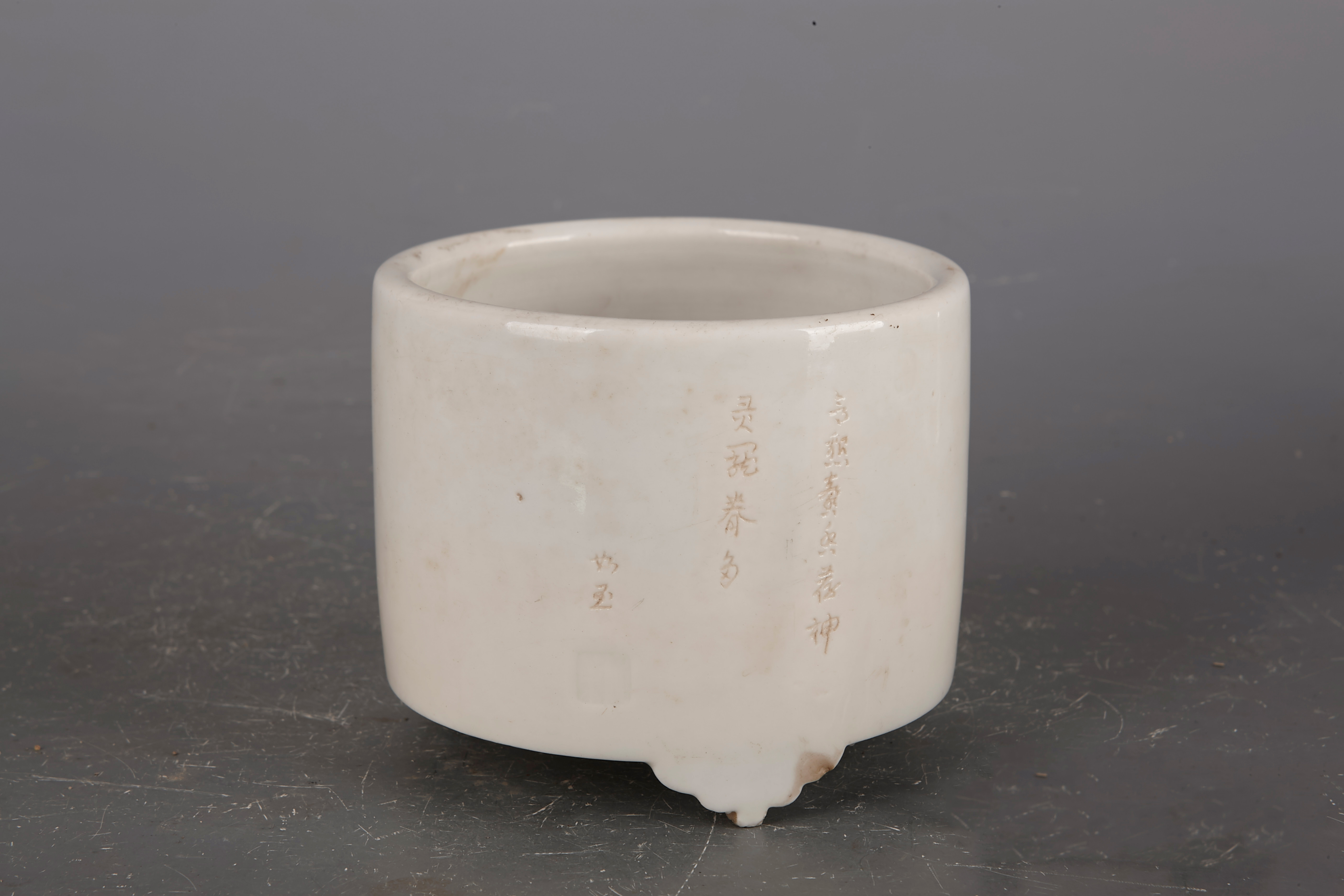 明德化窑白釉弦纹三足炉