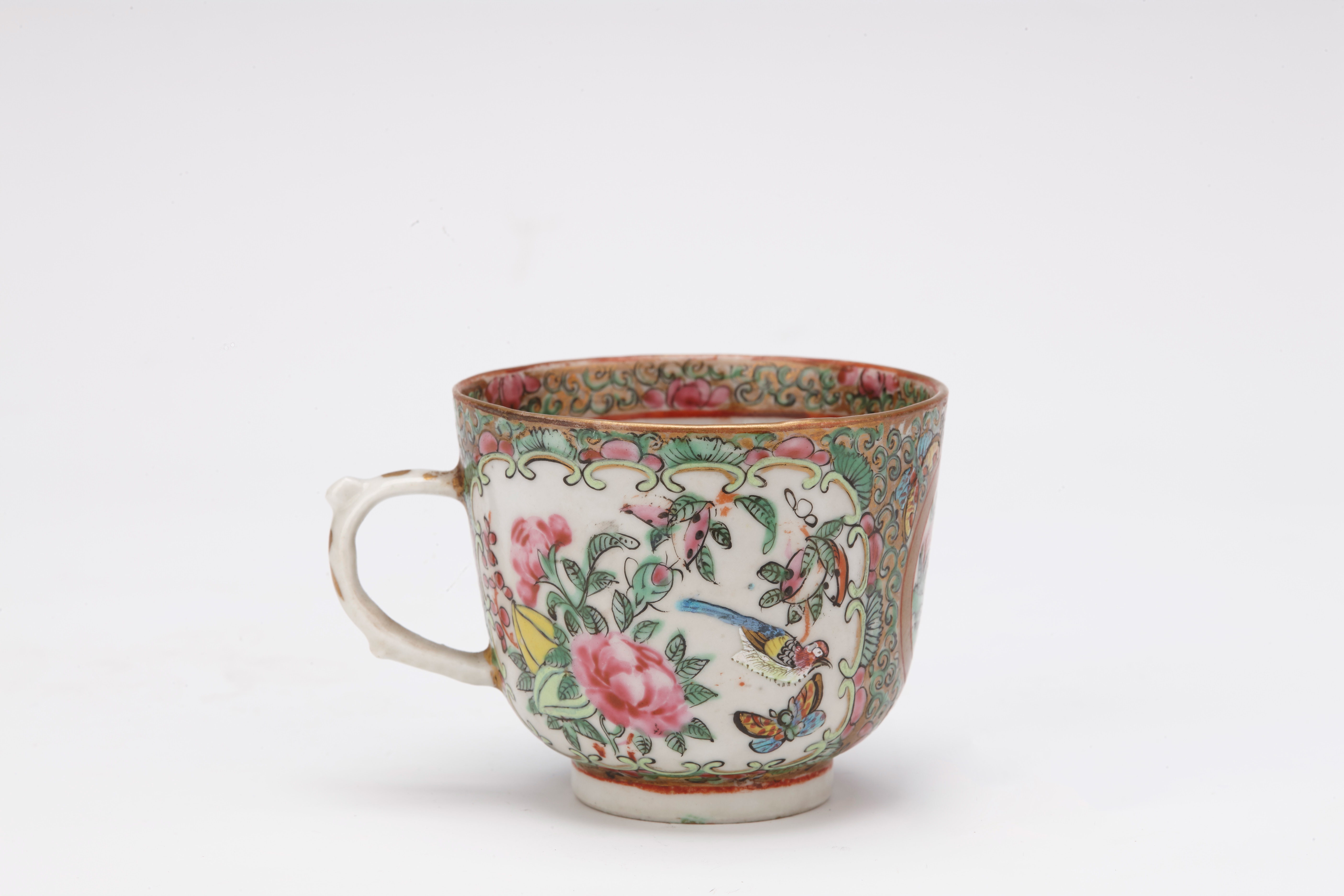 清同治广彩开光人物单耳瓷杯