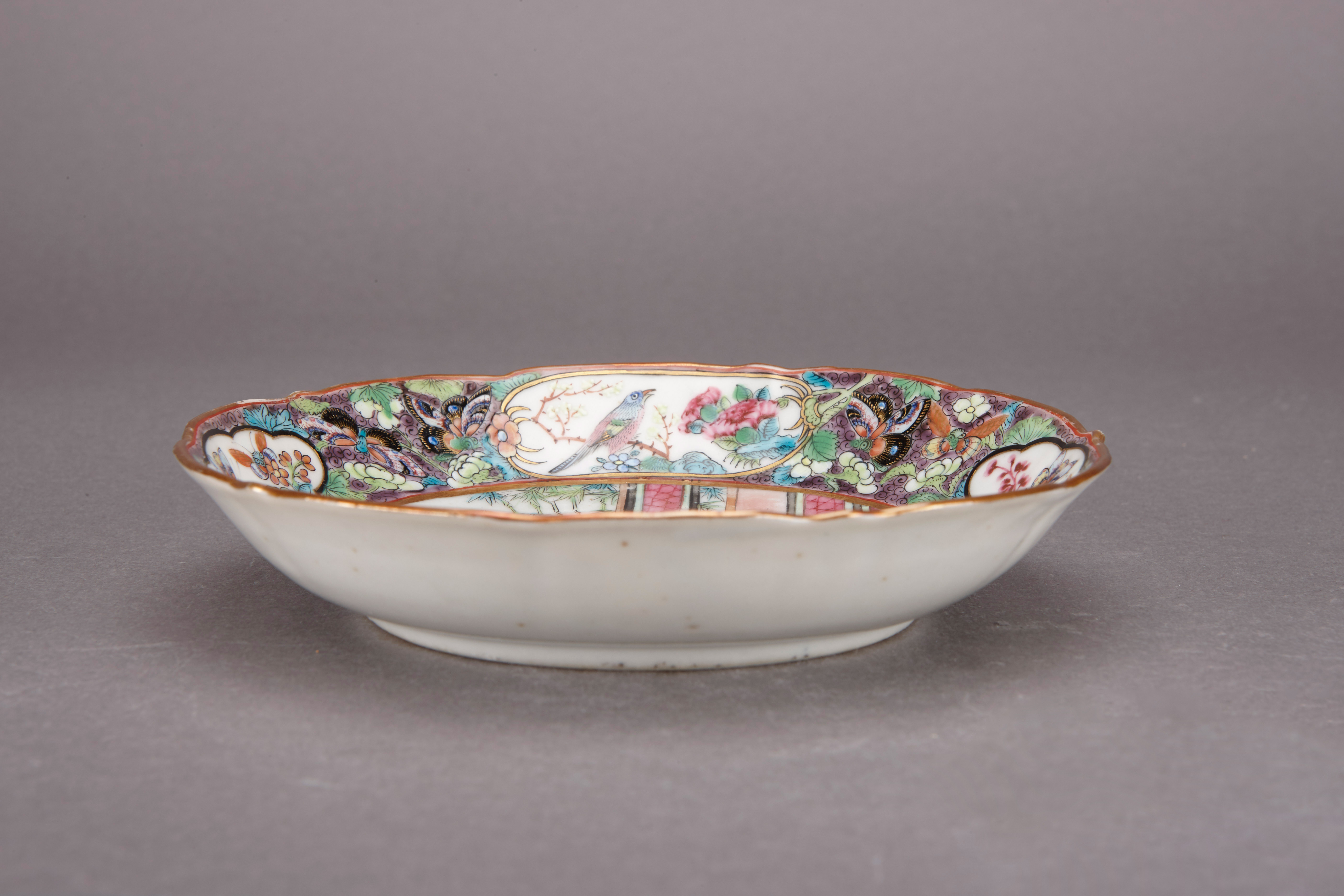清同治广彩人物纹瓣口碟