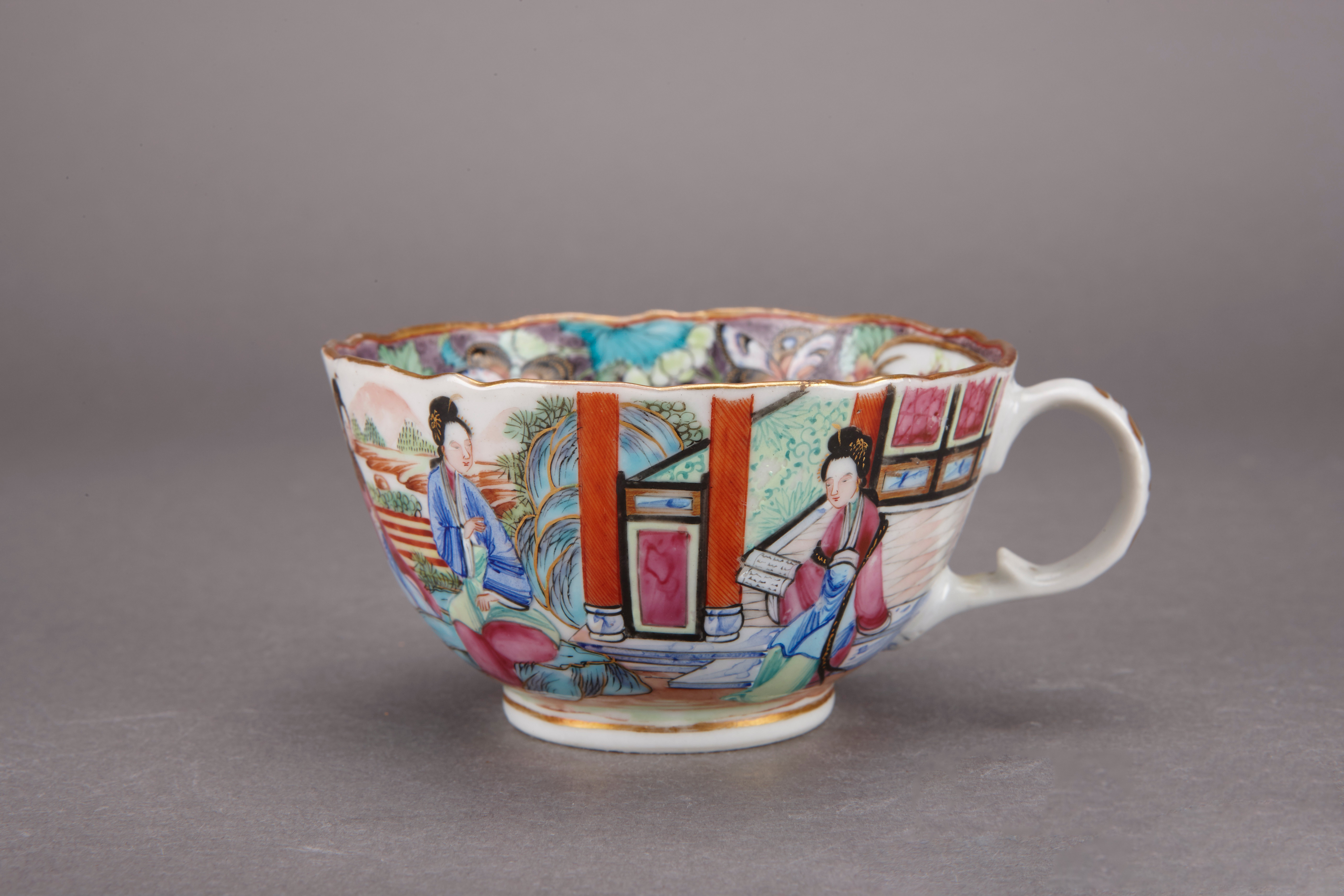 清同治广彩人物瓣口把杯