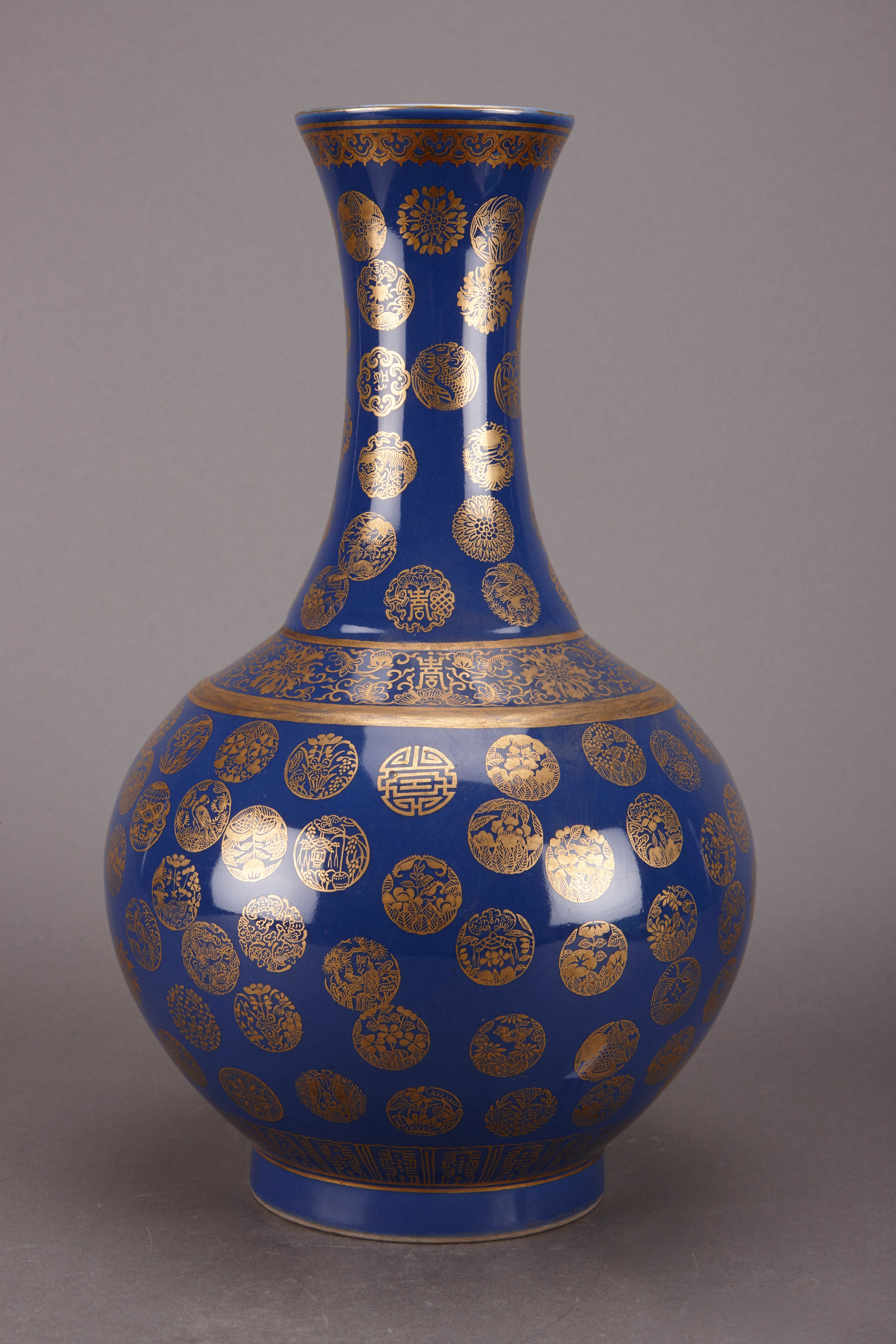 清光绪款蓝釉描金团花瓶