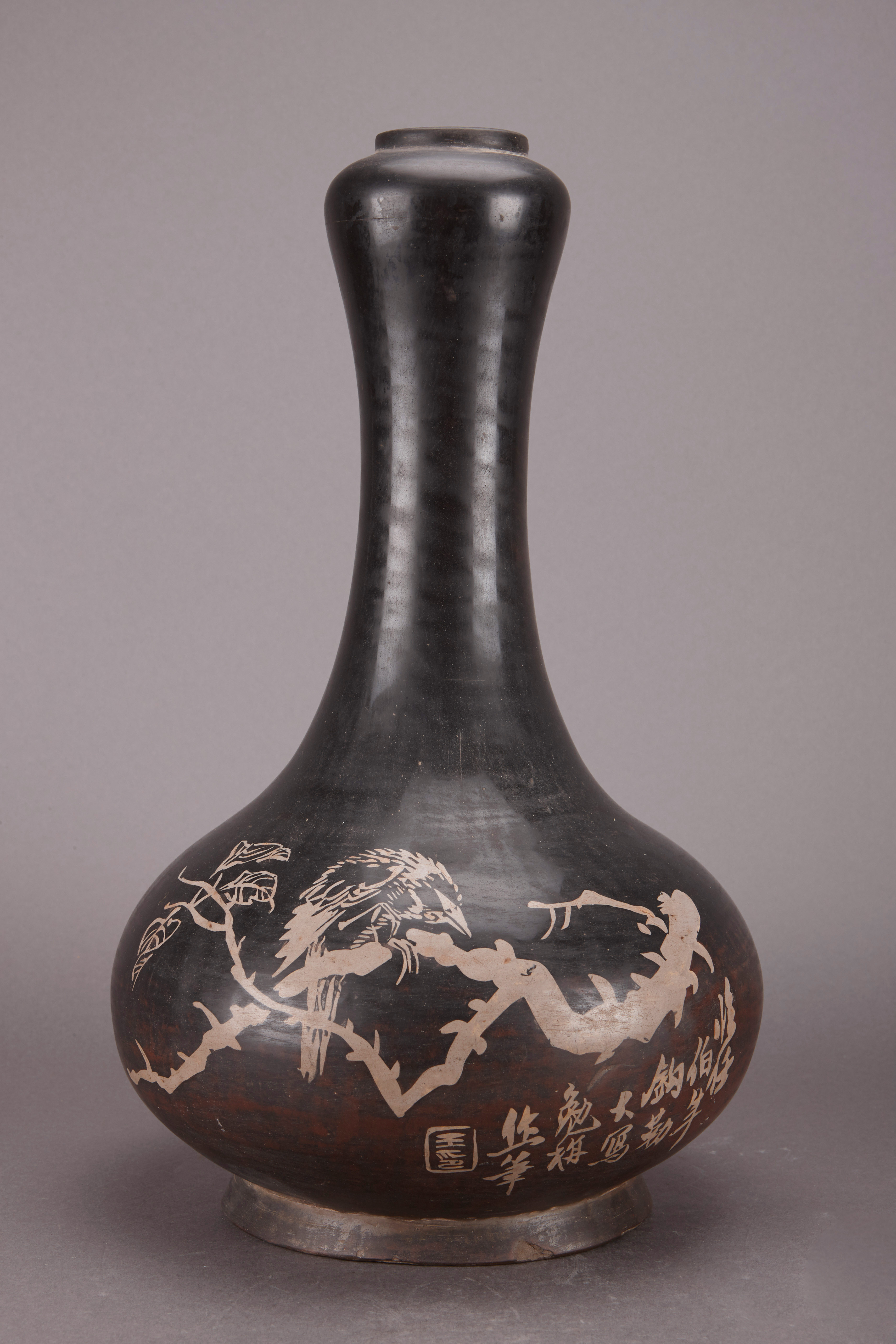民国石湾窑“吴南石堂”款素胎葡萄纹双耳瓶