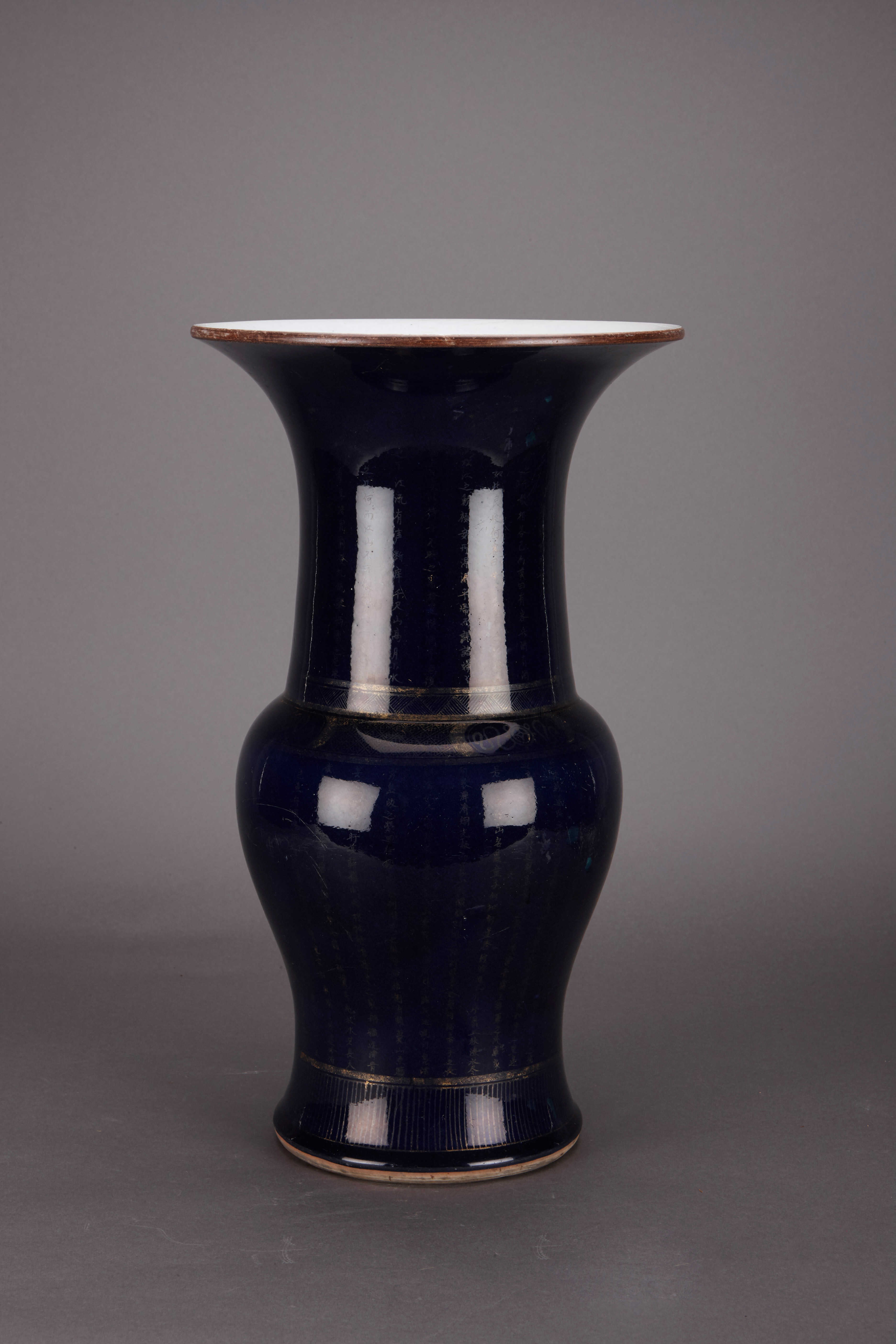 清蓝釉描金诗文觚