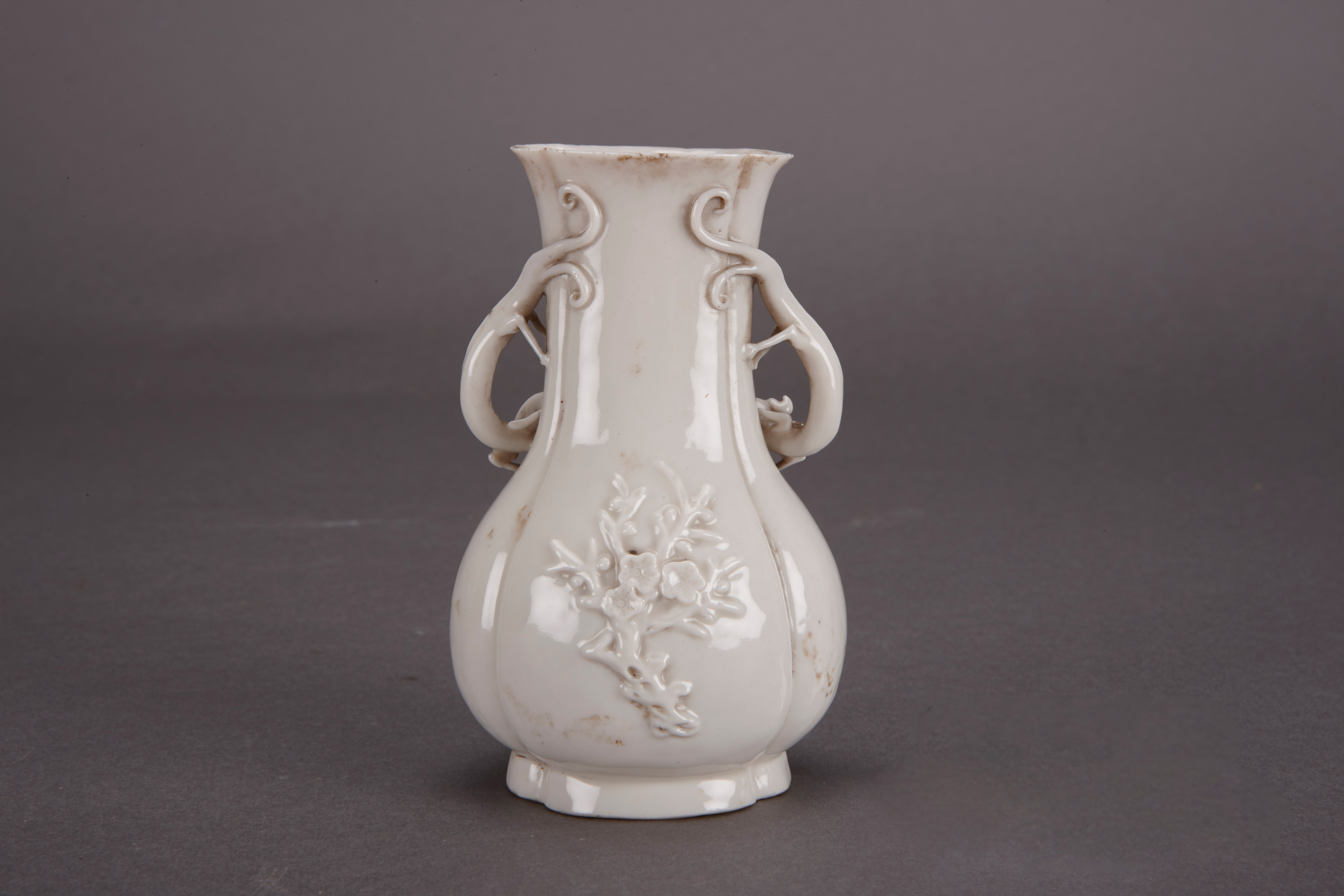 清德化窑双螭龙耳刻花瓜棱小瓶