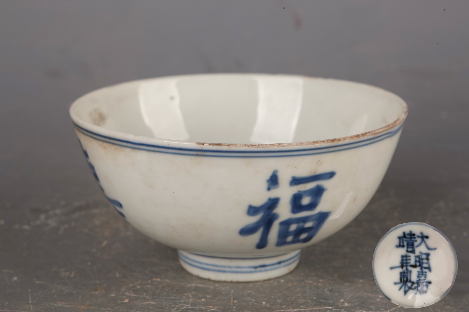 明嘉靖青花福寿康宁碗