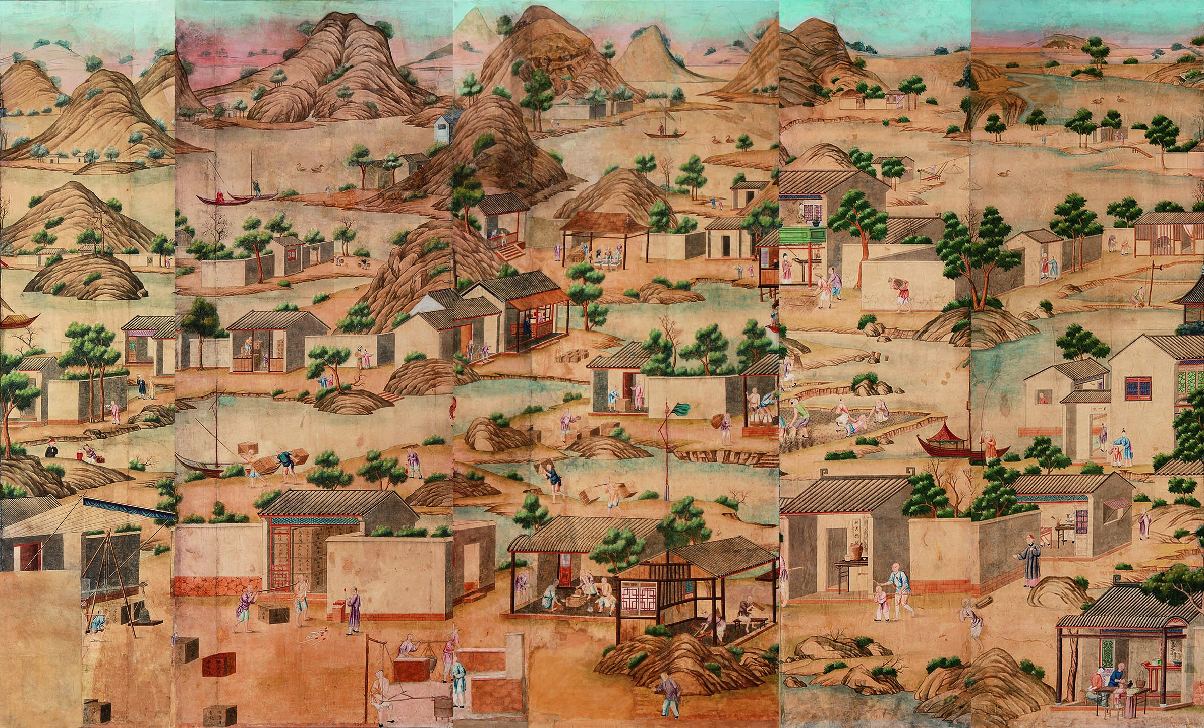 - 名称: 清乾隆广州手绘农耕商贸图外销壁纸