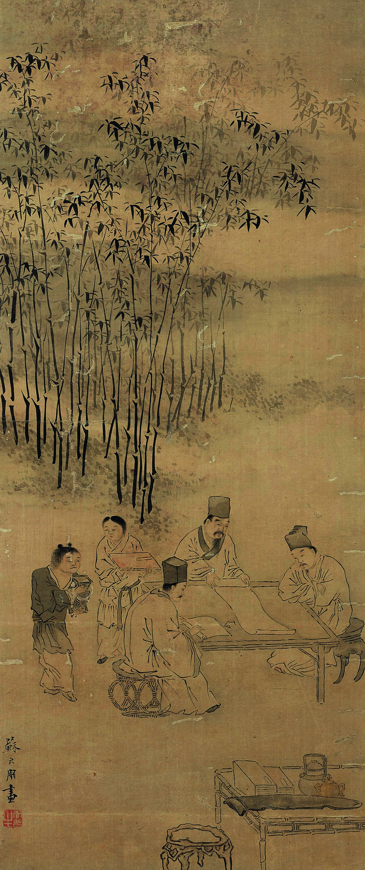名称: 清苏六朋人物轴 年代: 清 类型: 书法、绘画 质地: 纸 尺寸: 纵62.5 厘米;横26 厘米 来源: 广东省博物馆 苏六朋,(1791 - 1862 年)〔清〕字枕琴,号怎道人、罗浮道人、广东顺德人。善画人物、山水,人物画有黄慎之风,时有奇效,细笔尤佳。作品以写社会现实生活为多。在岭南画坛与苏仁山并成为“二苏”。