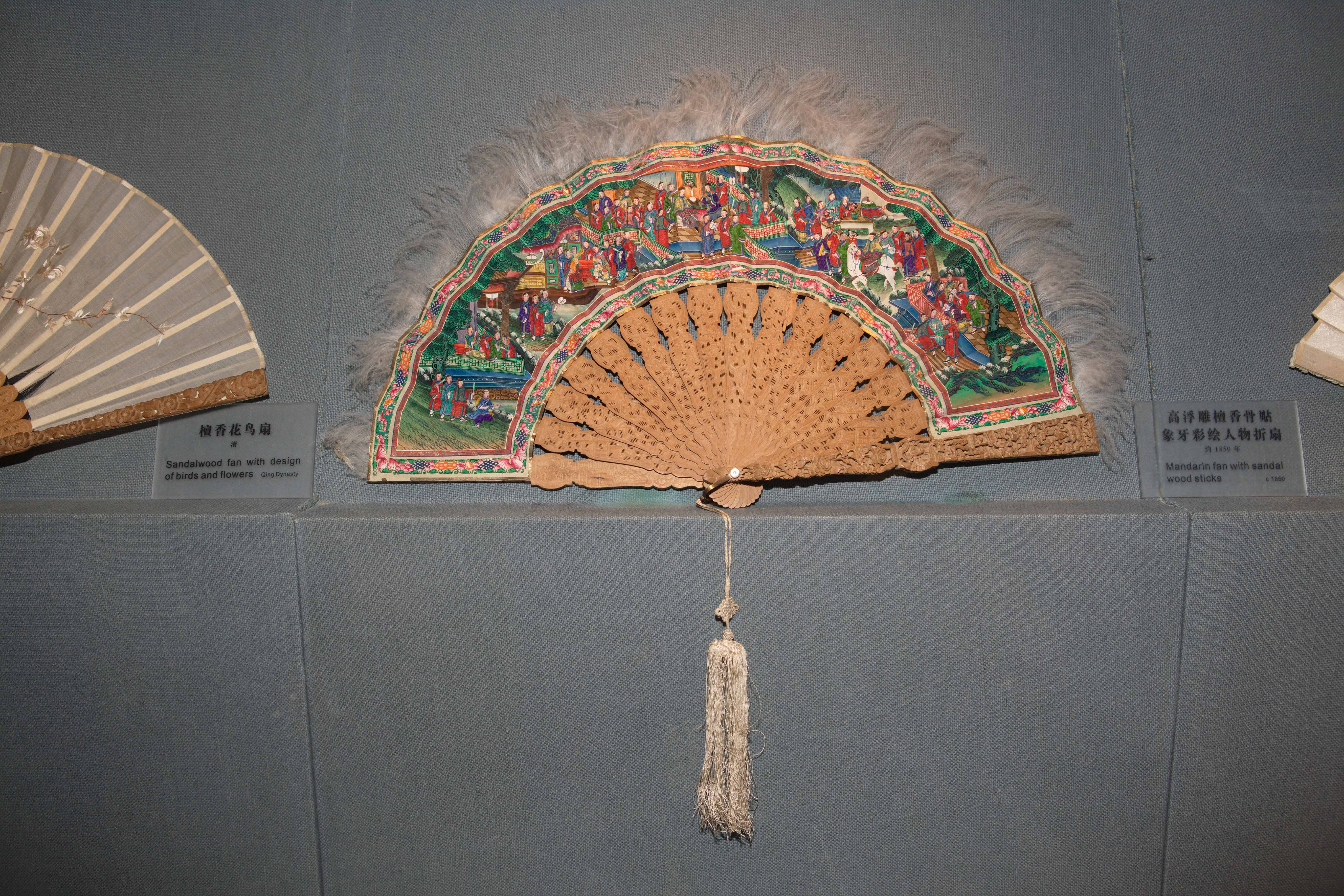 名称:约1850年高浮雕檀香骨贴象牙彩绘人物折扇