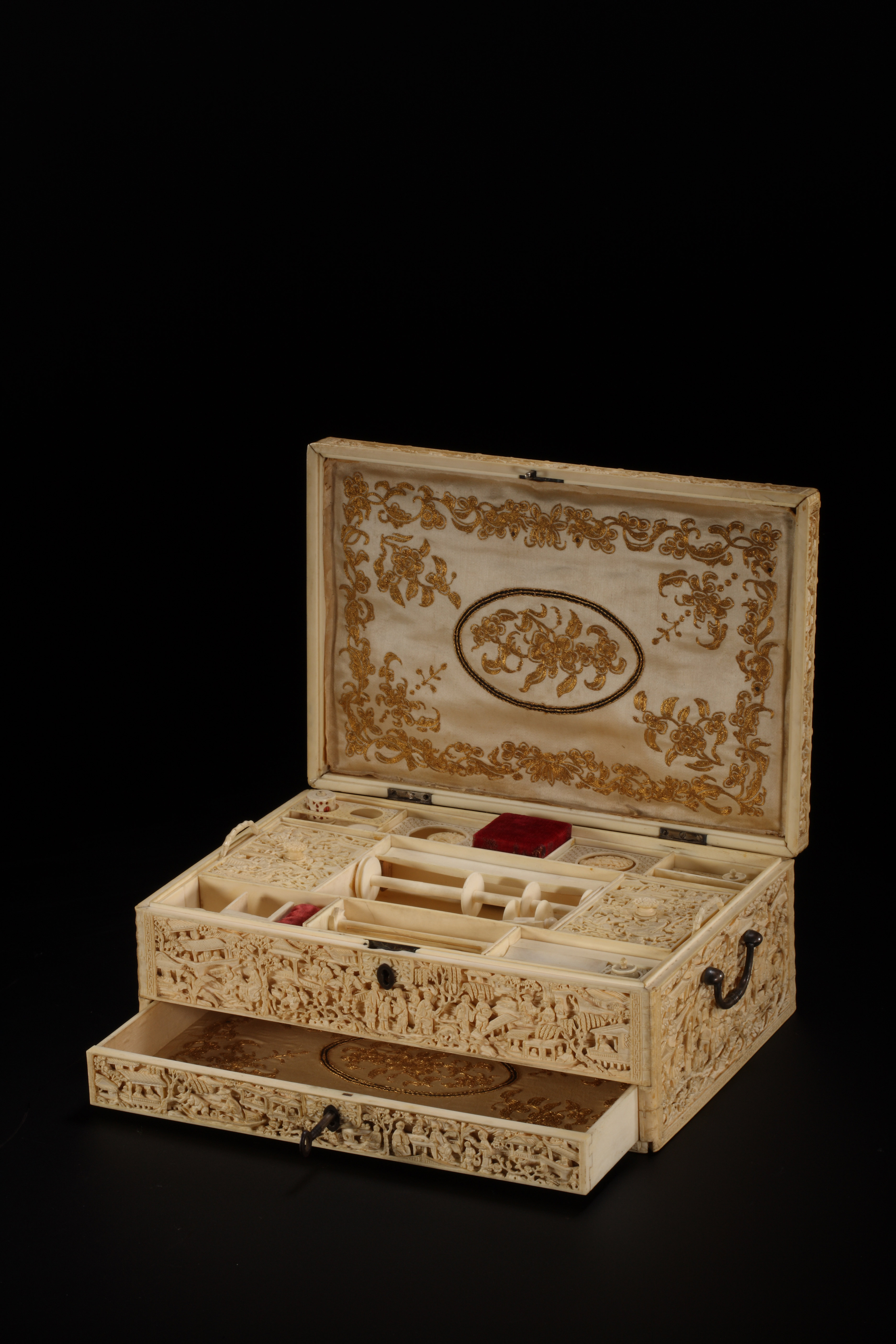 名称:清中期象牙镂雕人物针线盒