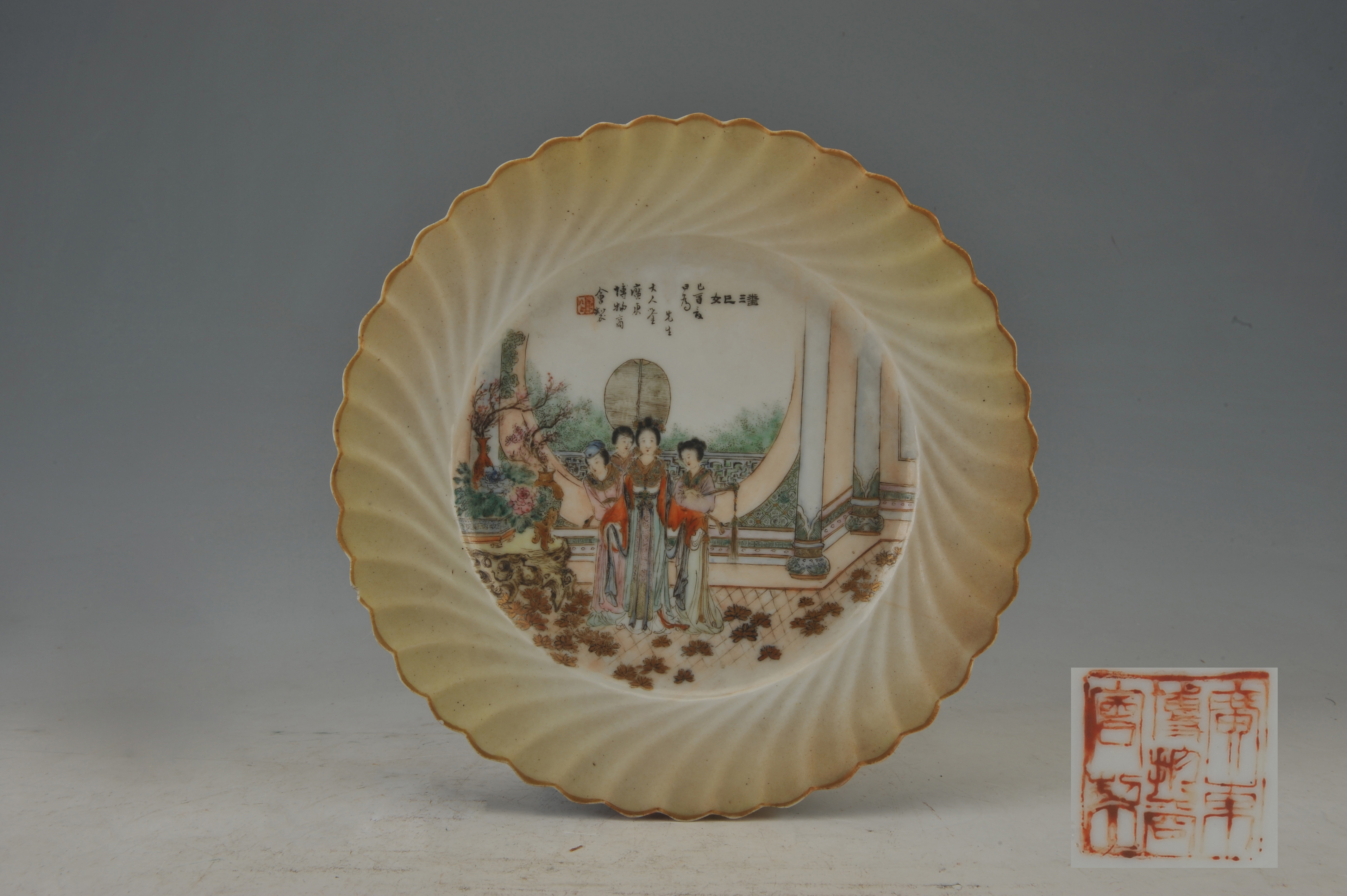 名称:清同治广彩锦地开光人物纹瓣口瓶