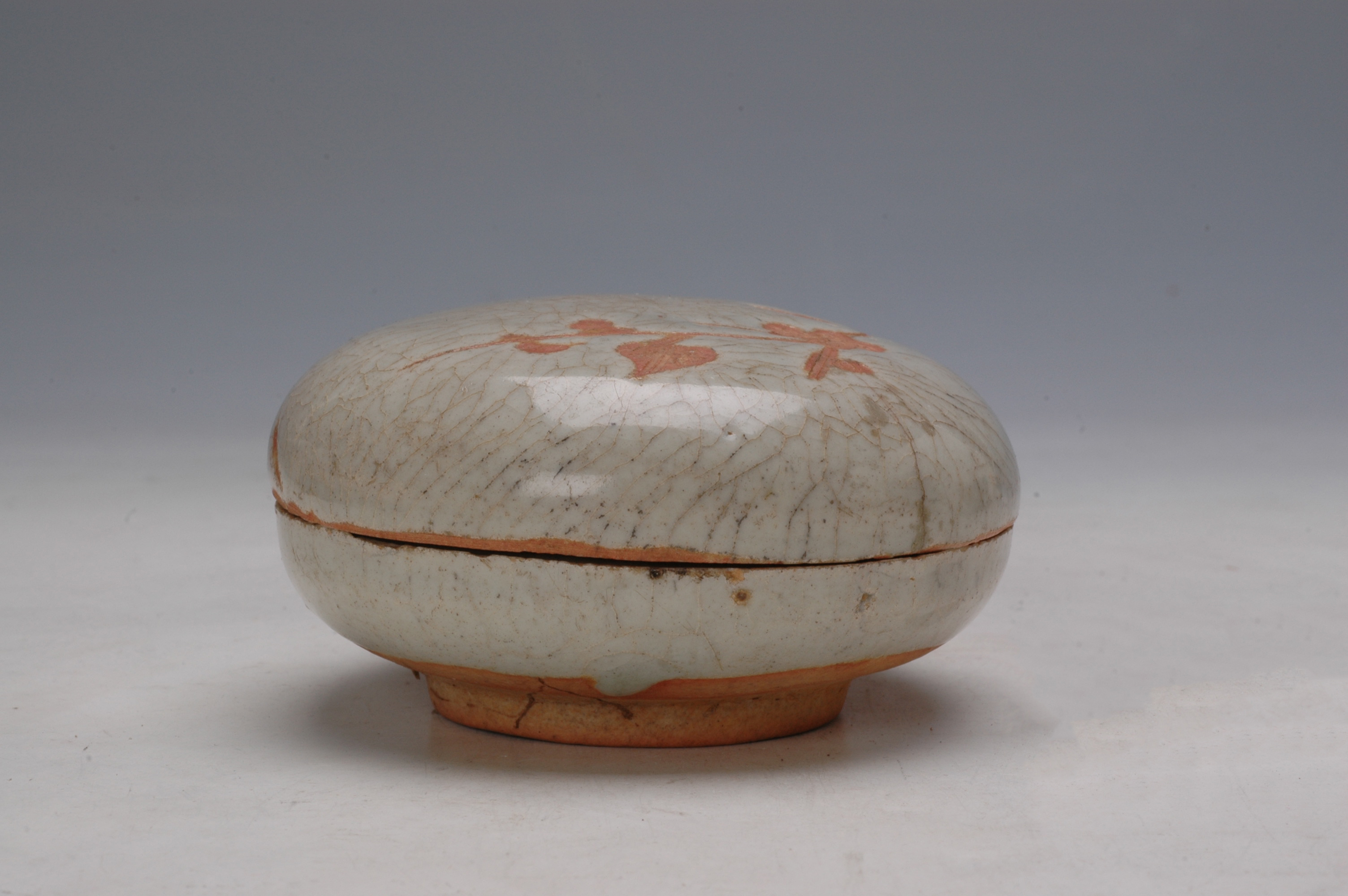 名称:南宋吉州窑青白釉刻花月影梅纹印盒
