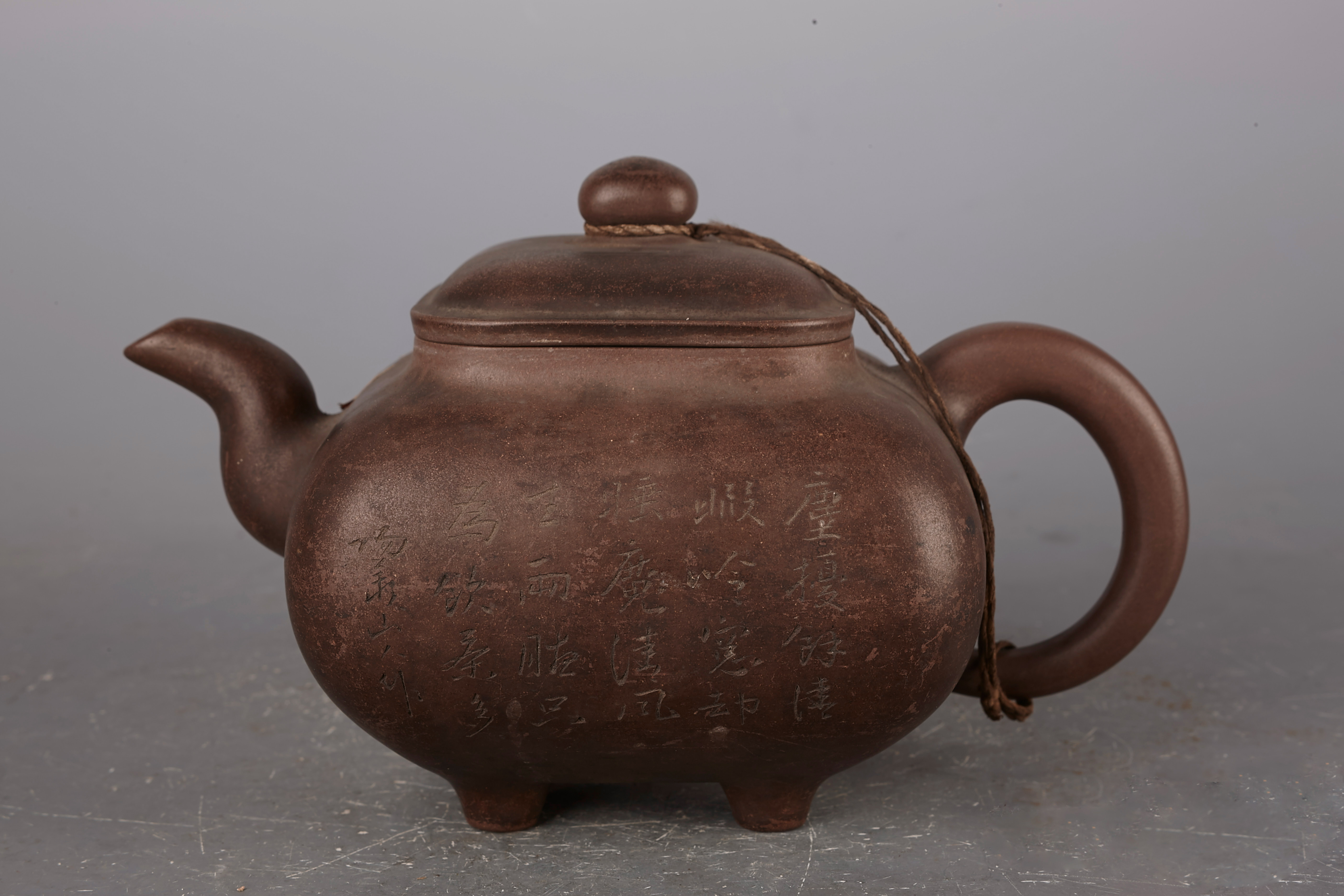 名称:民国宜兴刻竹题字茶壶