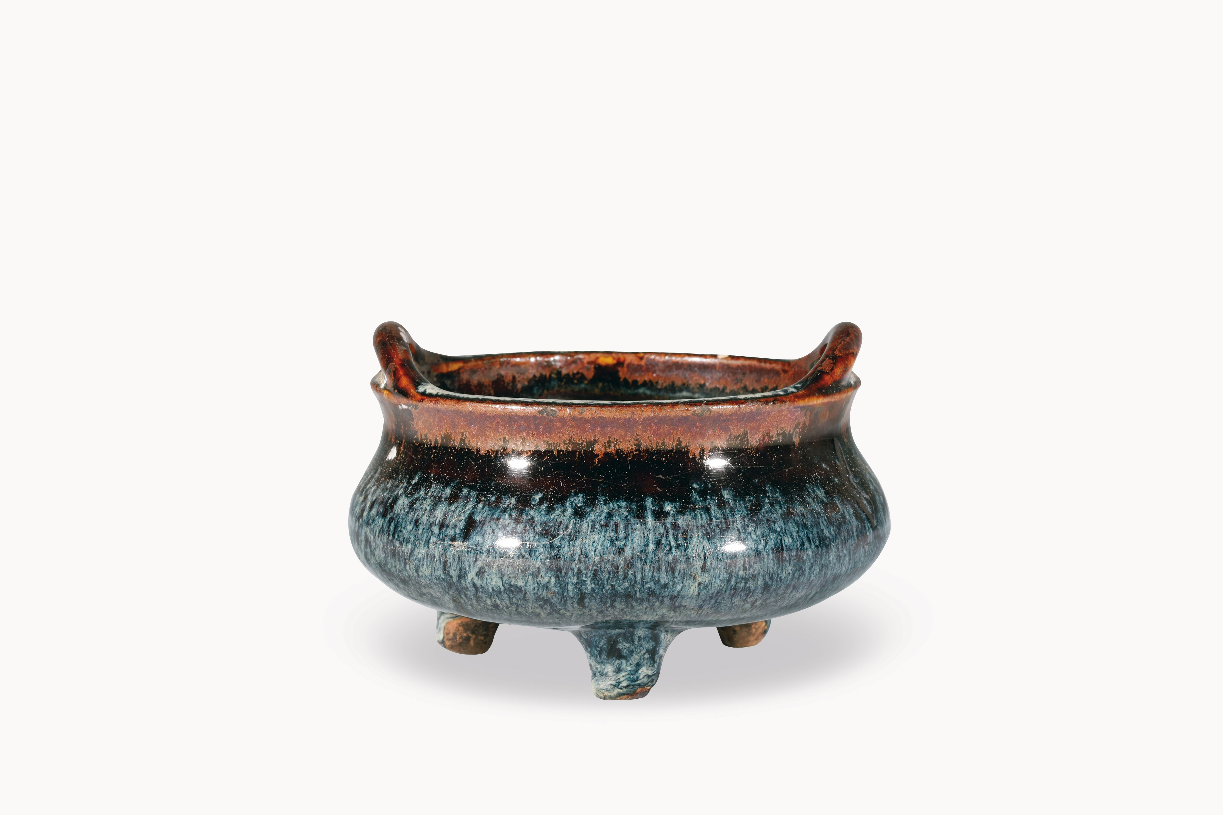 名称:明石湾翠毛釉三脚双耳炉