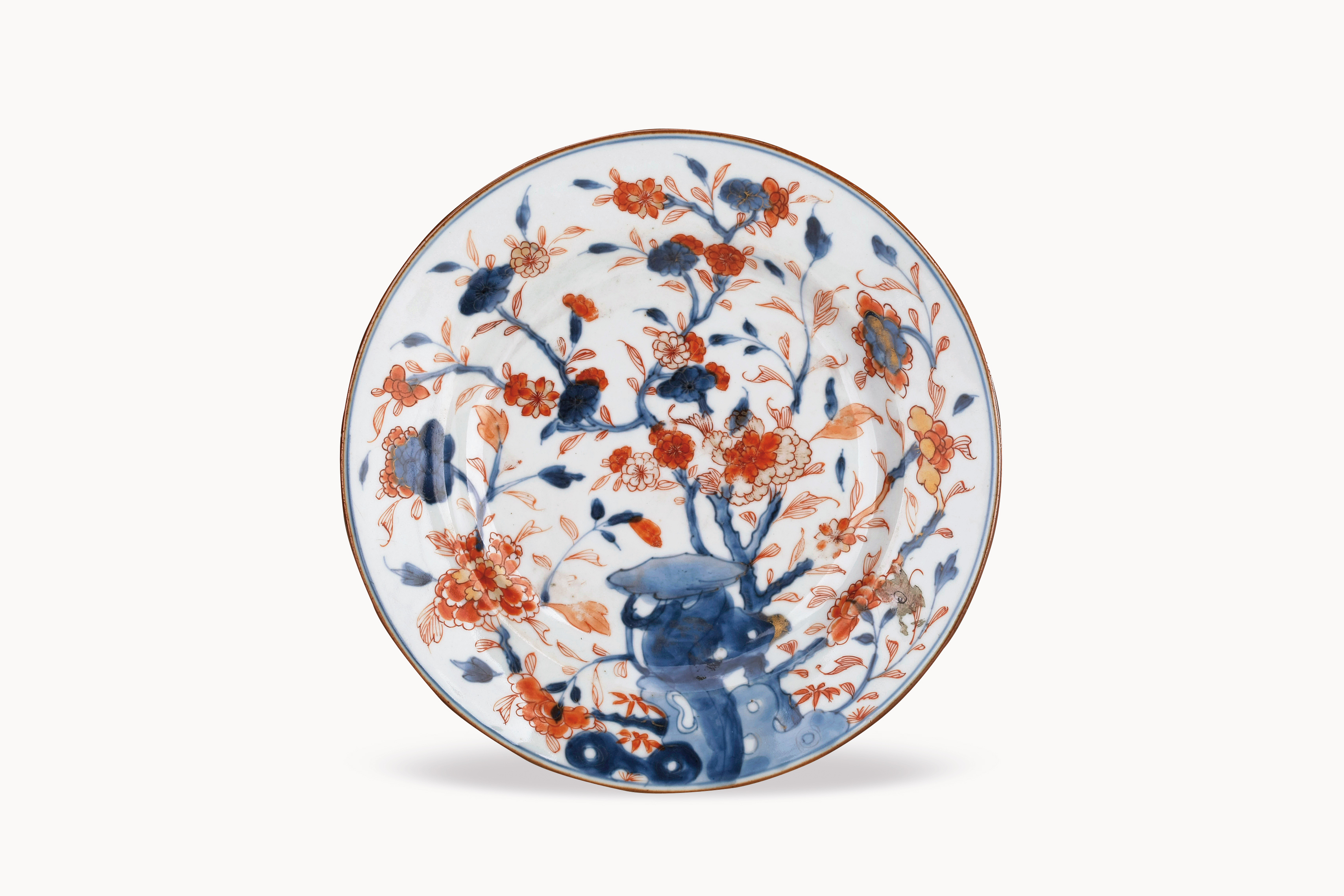 名称:清雍正青花矾红花卉盘