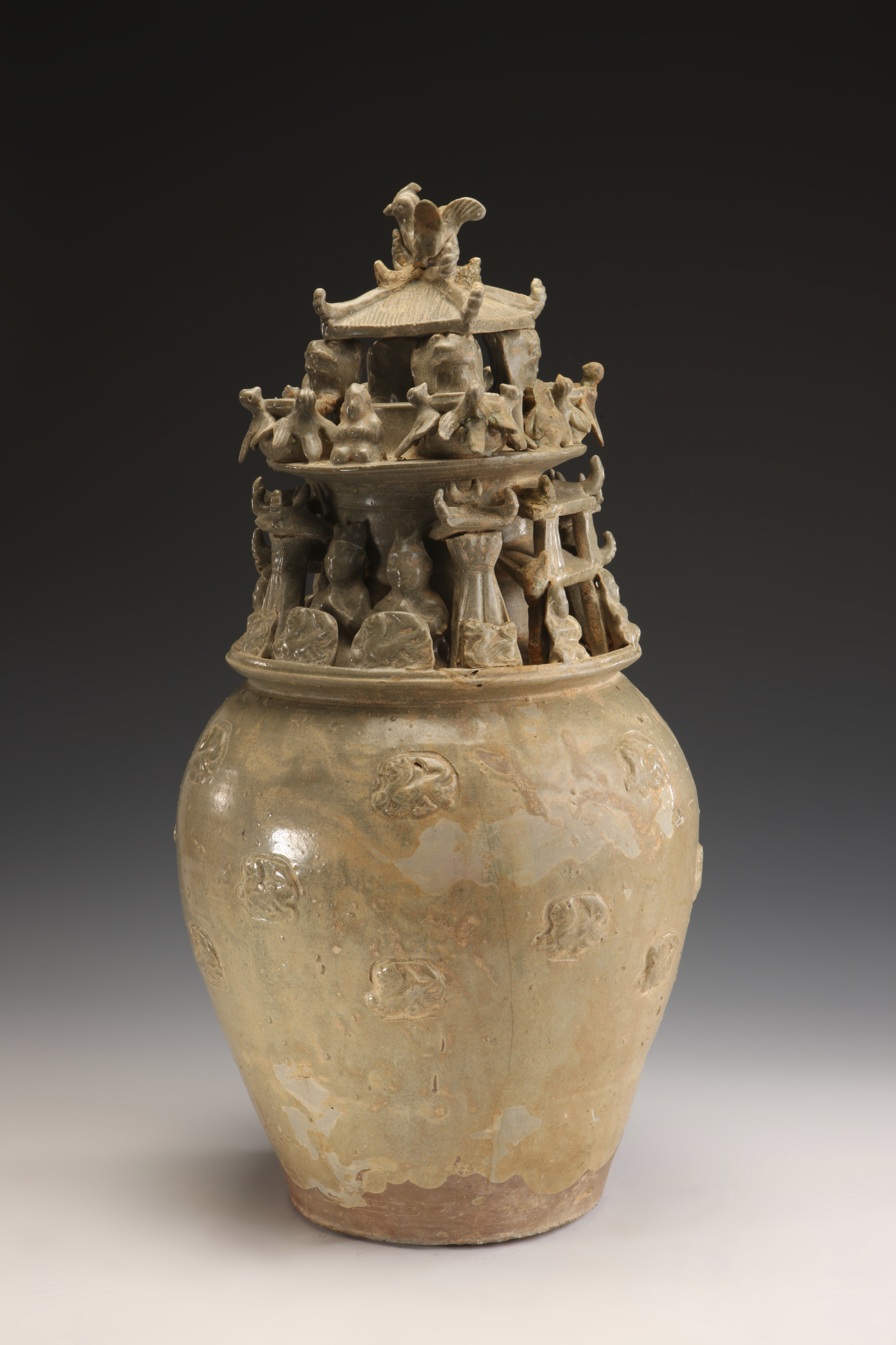 名称:西晋青釉堆贴人物鸟兽谷仓