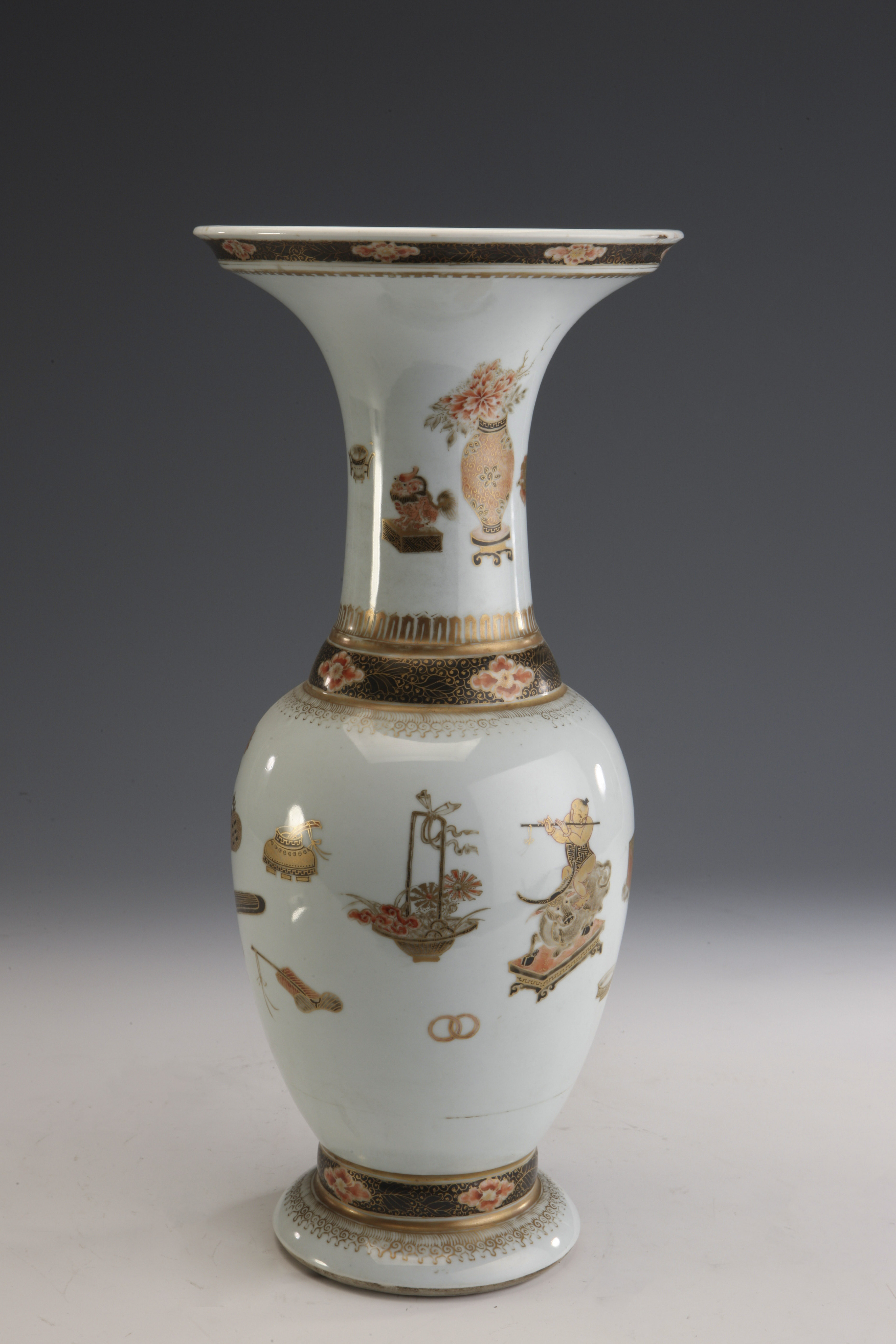 名称:清广彩浆胎花卉奖杯纹瓜棱扁瓶