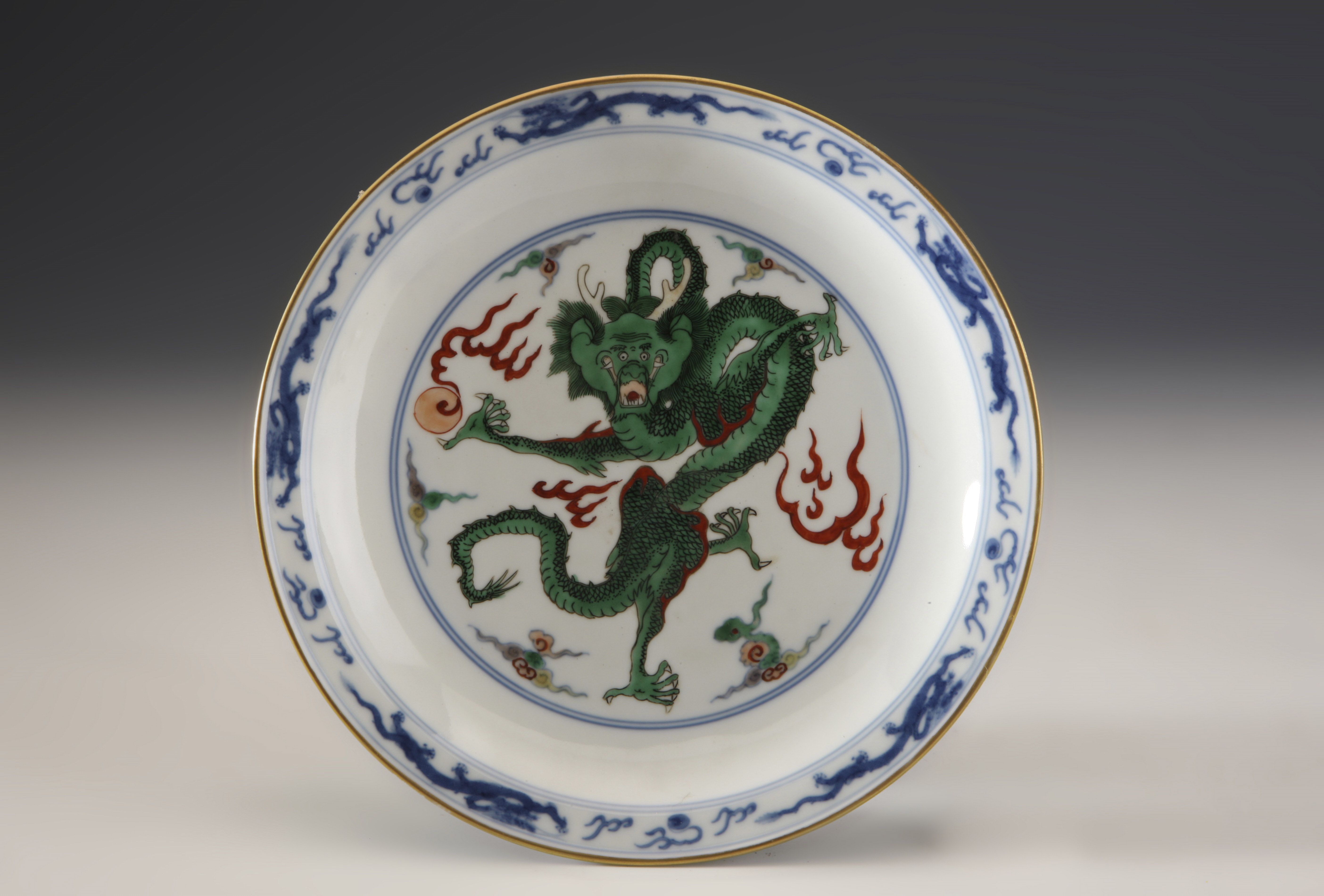 名称:清雍正款五彩龙凤纹盘