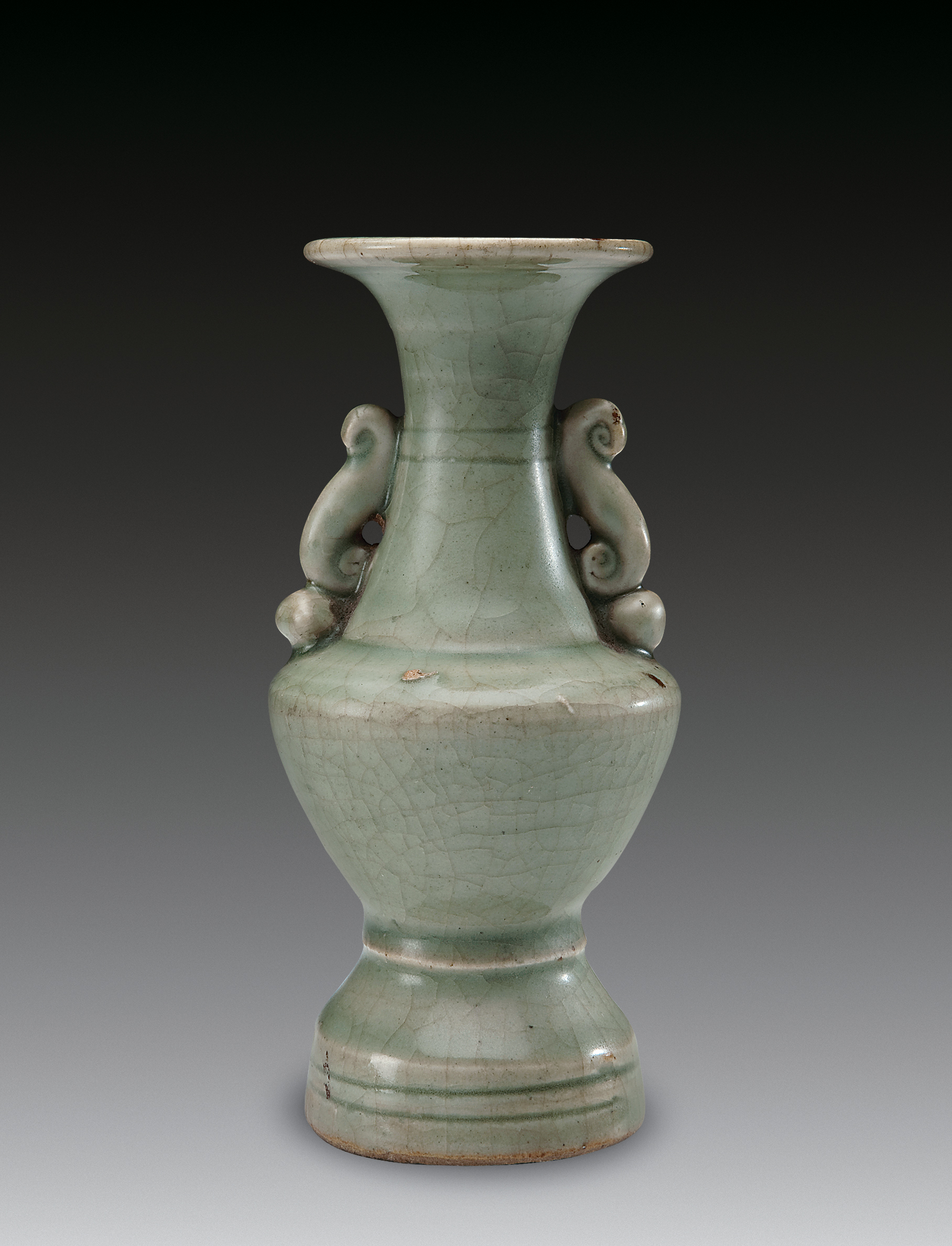 名称:清潮州白釉双兽啣环开光灯笼瓶