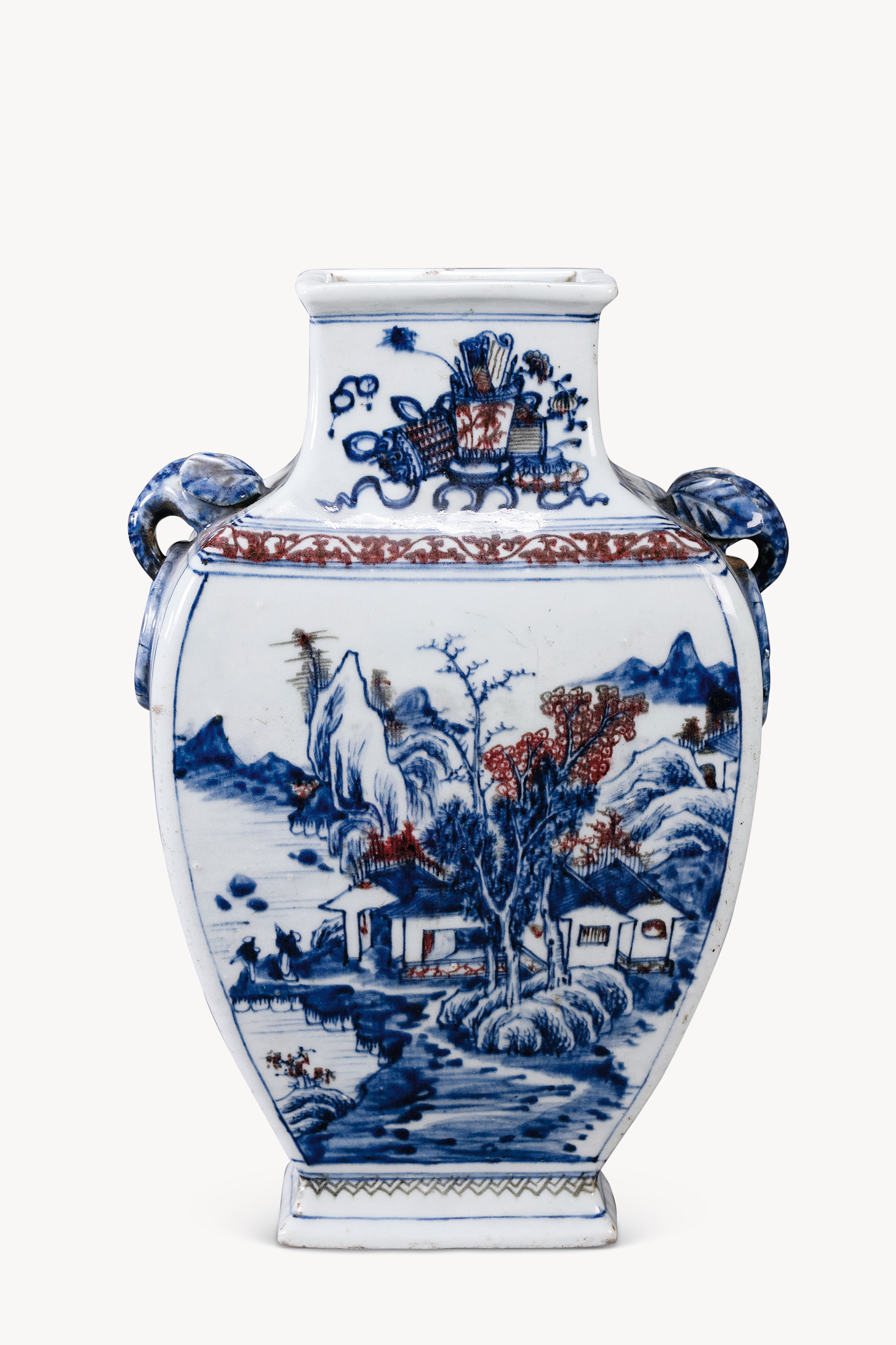 名称:清乾隆青花釉里红双象耳瓷瓶
