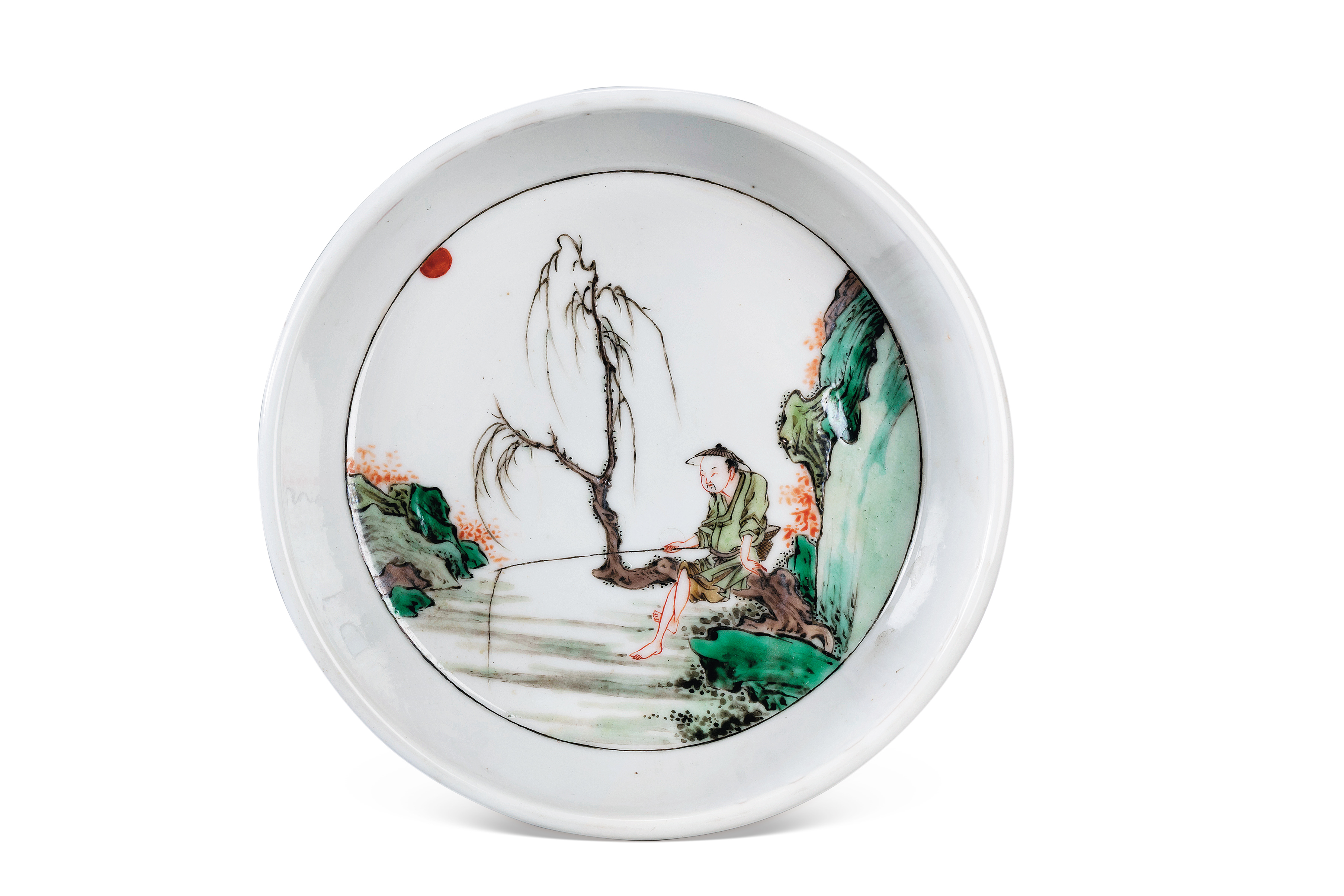 名称:清康熙五彩花鸟双耳椭圆瓷盆