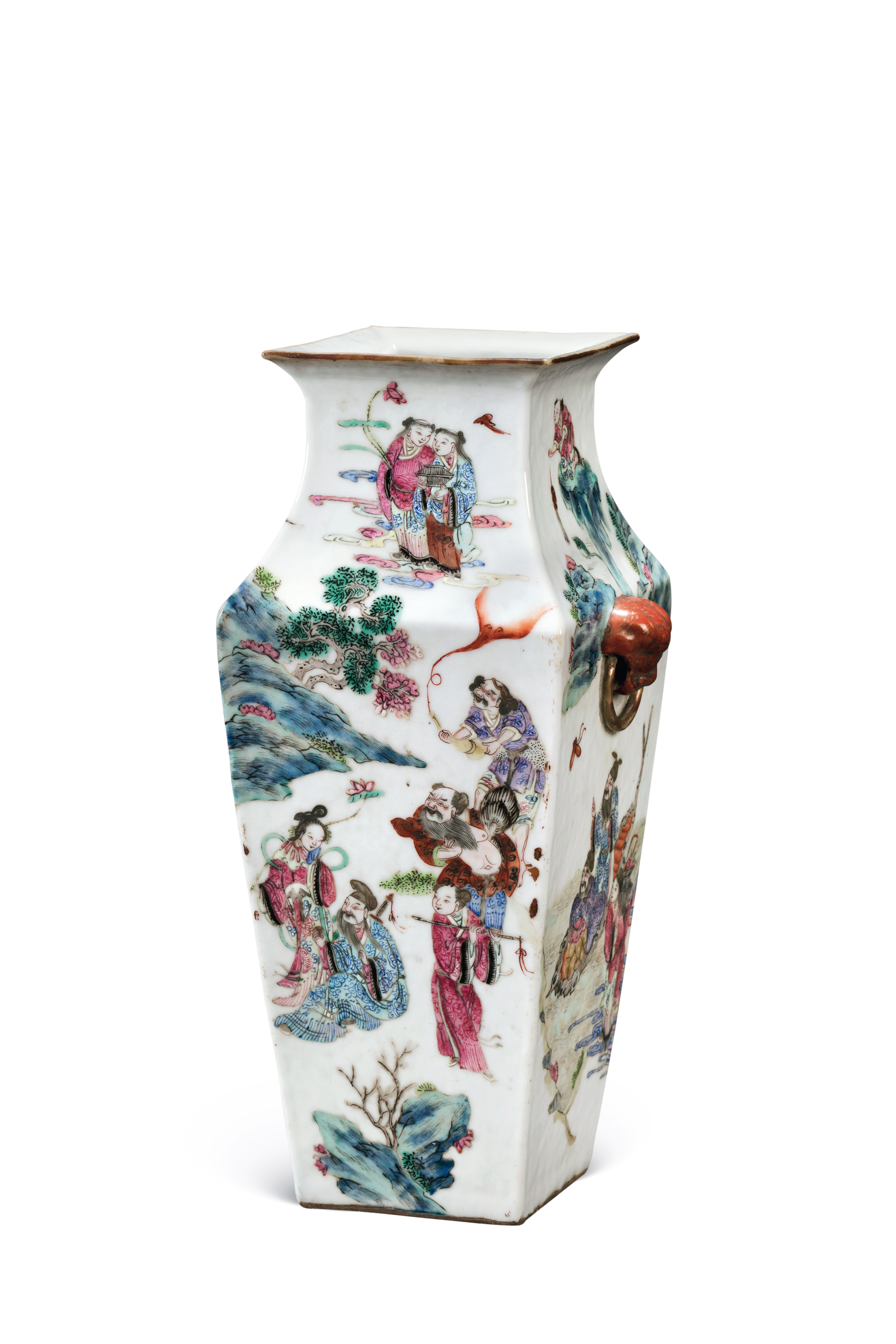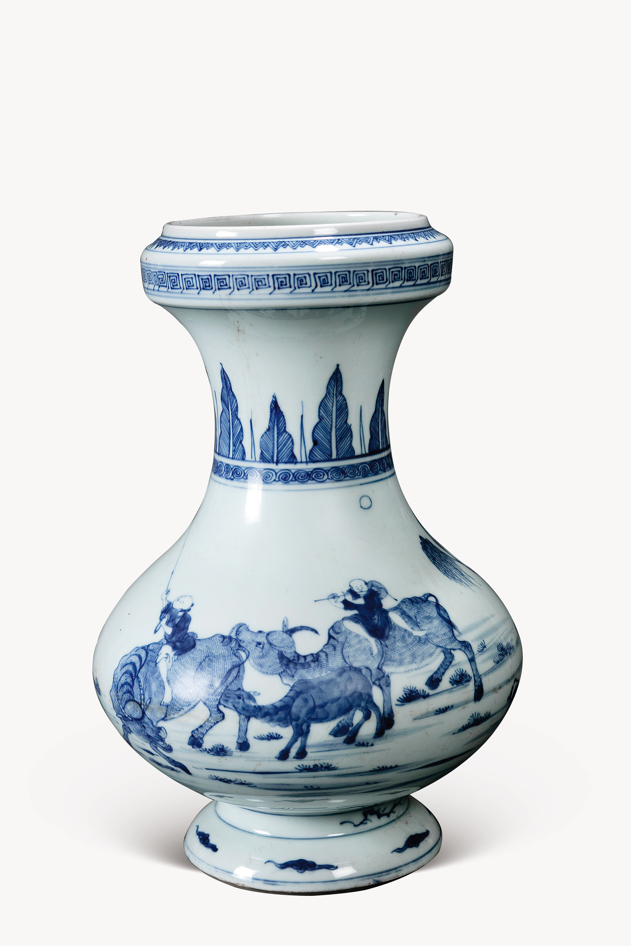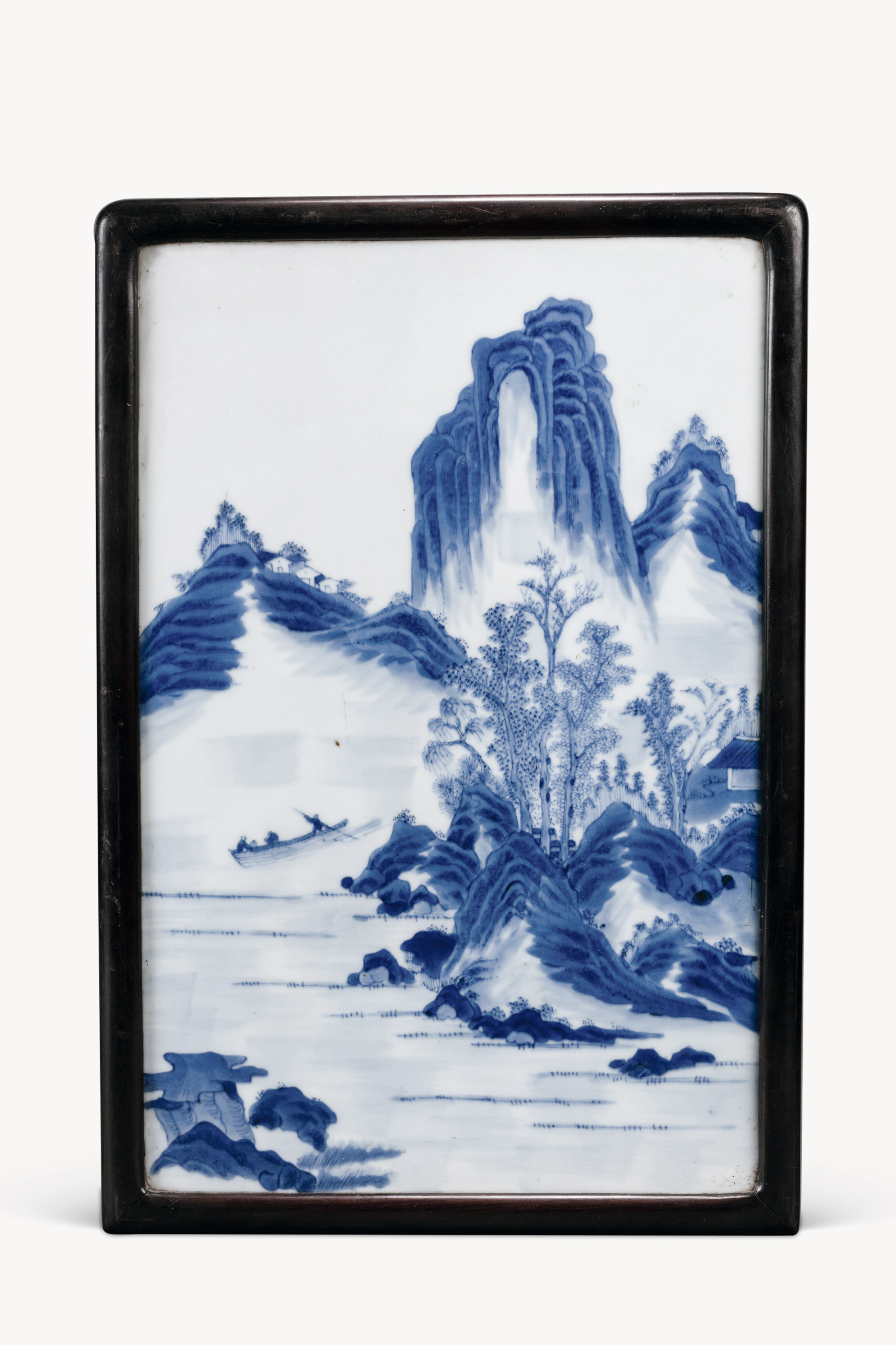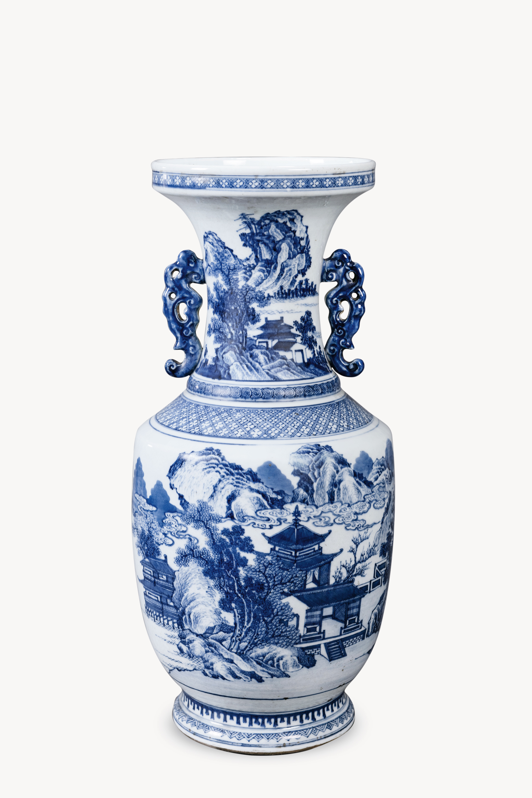 名称:清康熙青花开窗山水贯耳瓷瓶