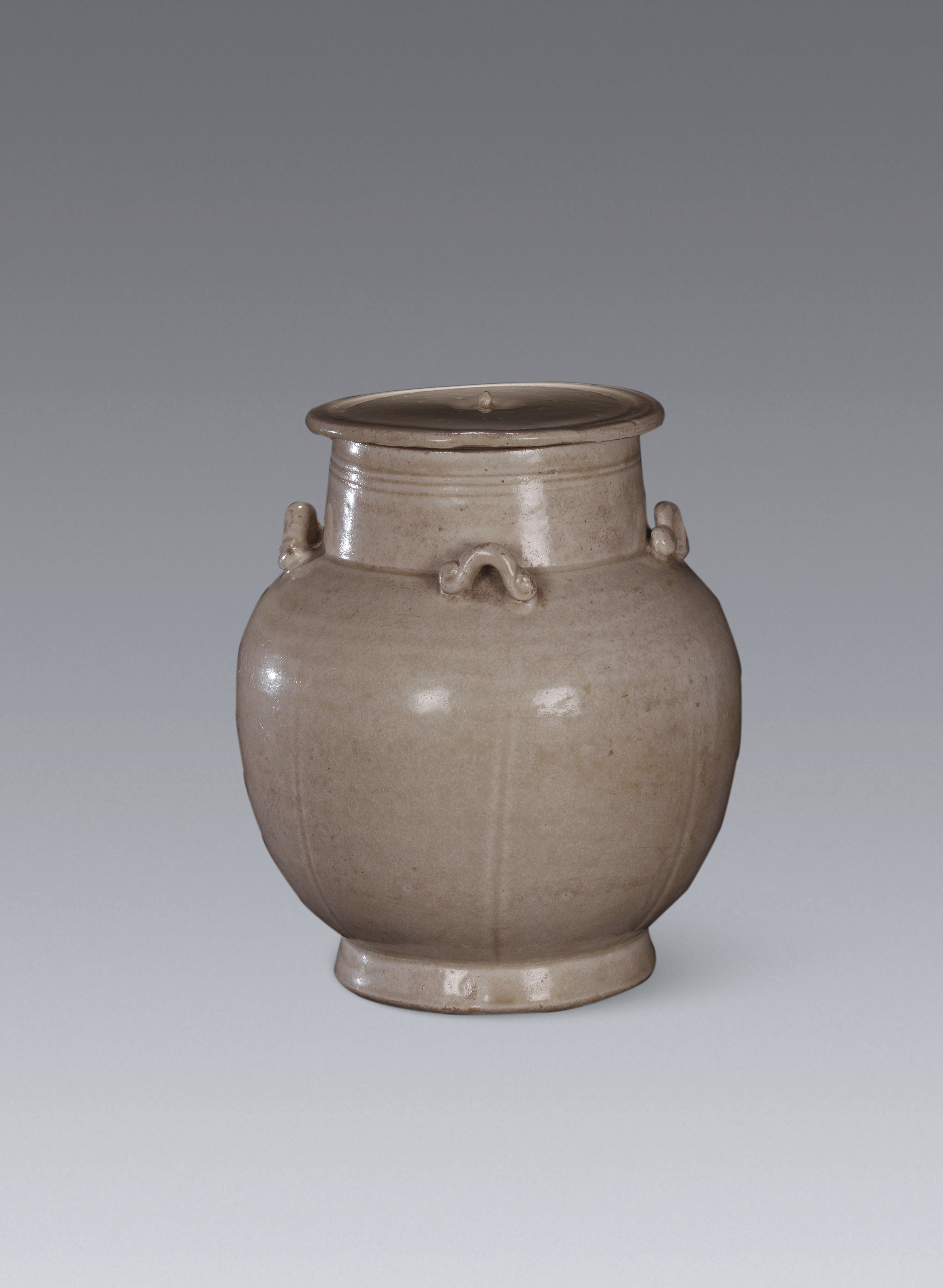 名称:北宋鹤壁窑白釉贴花叶纹瓷臼