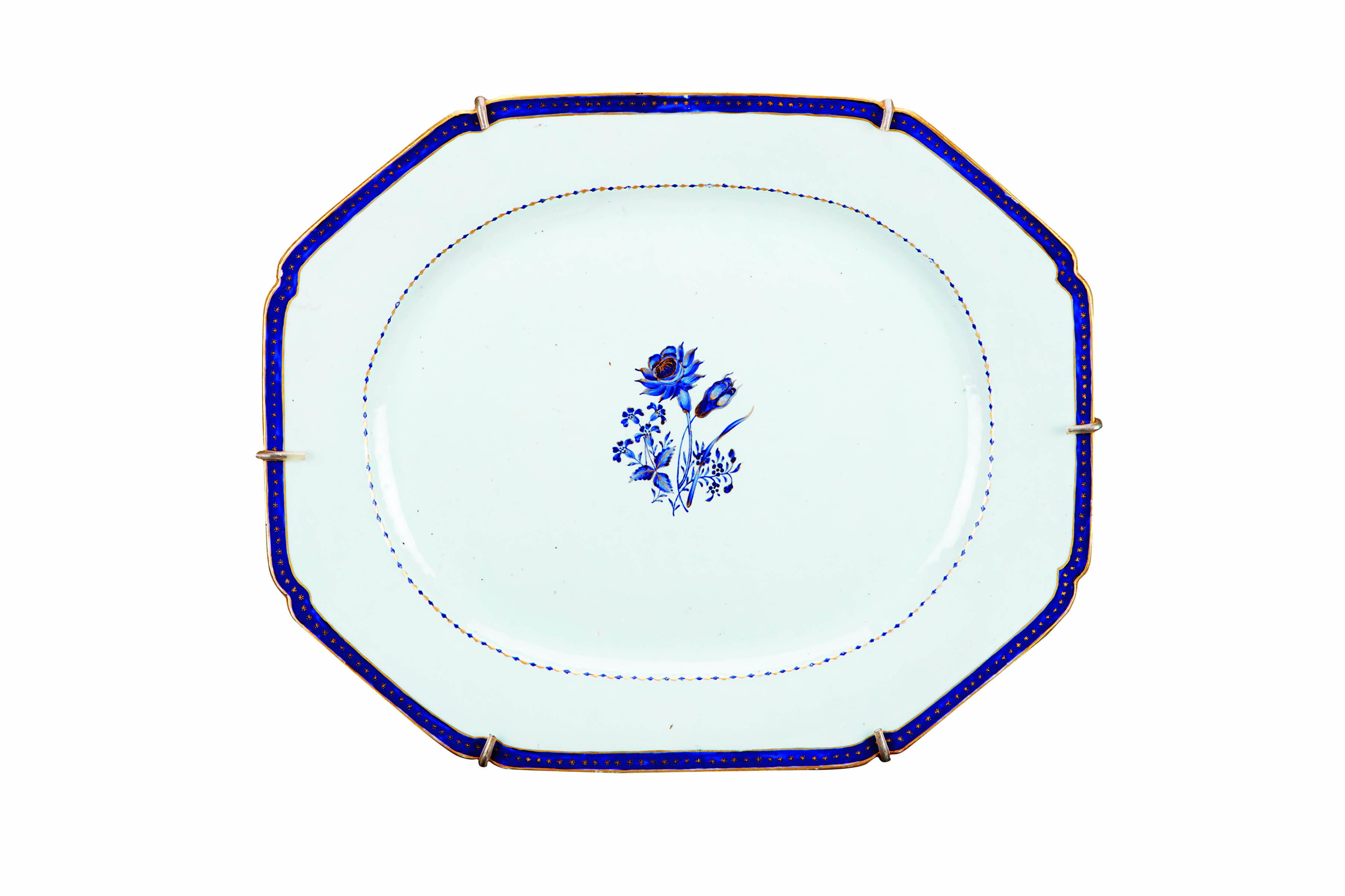 名称:清乾隆白釉蓝彩花卉纹八倭角椭圆形大盘