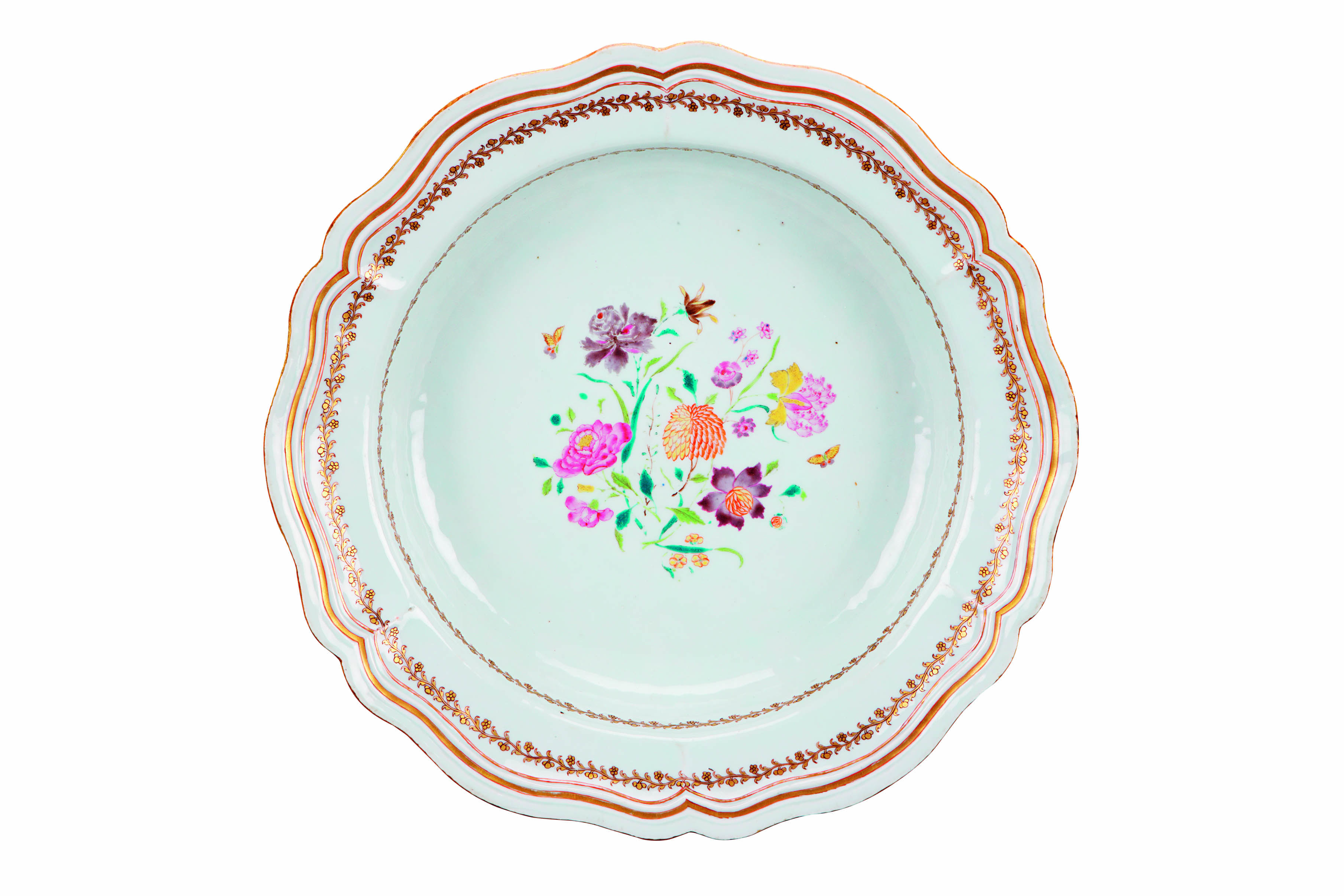 名称:清乾隆广彩描金花卉纹瓣口盆