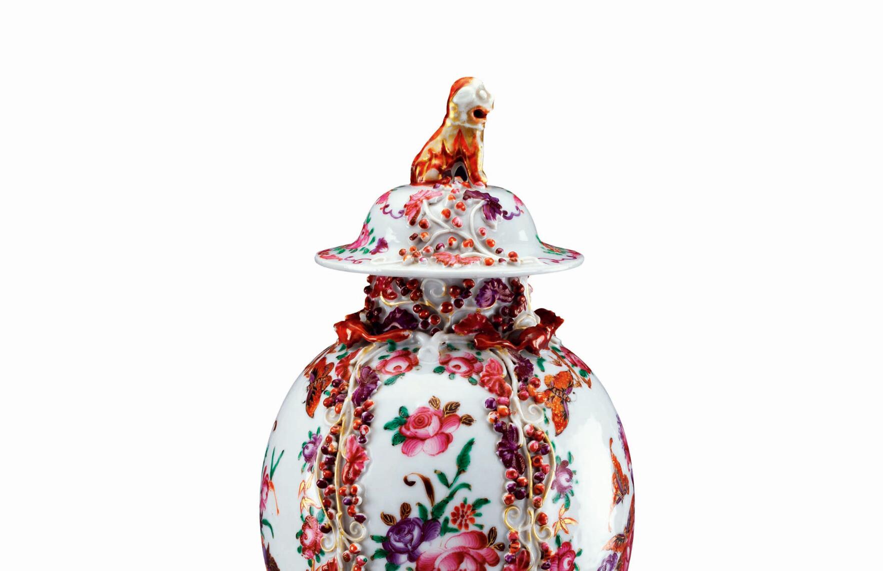 名称:清乾隆广彩雕瓷花卉纹盖瓶