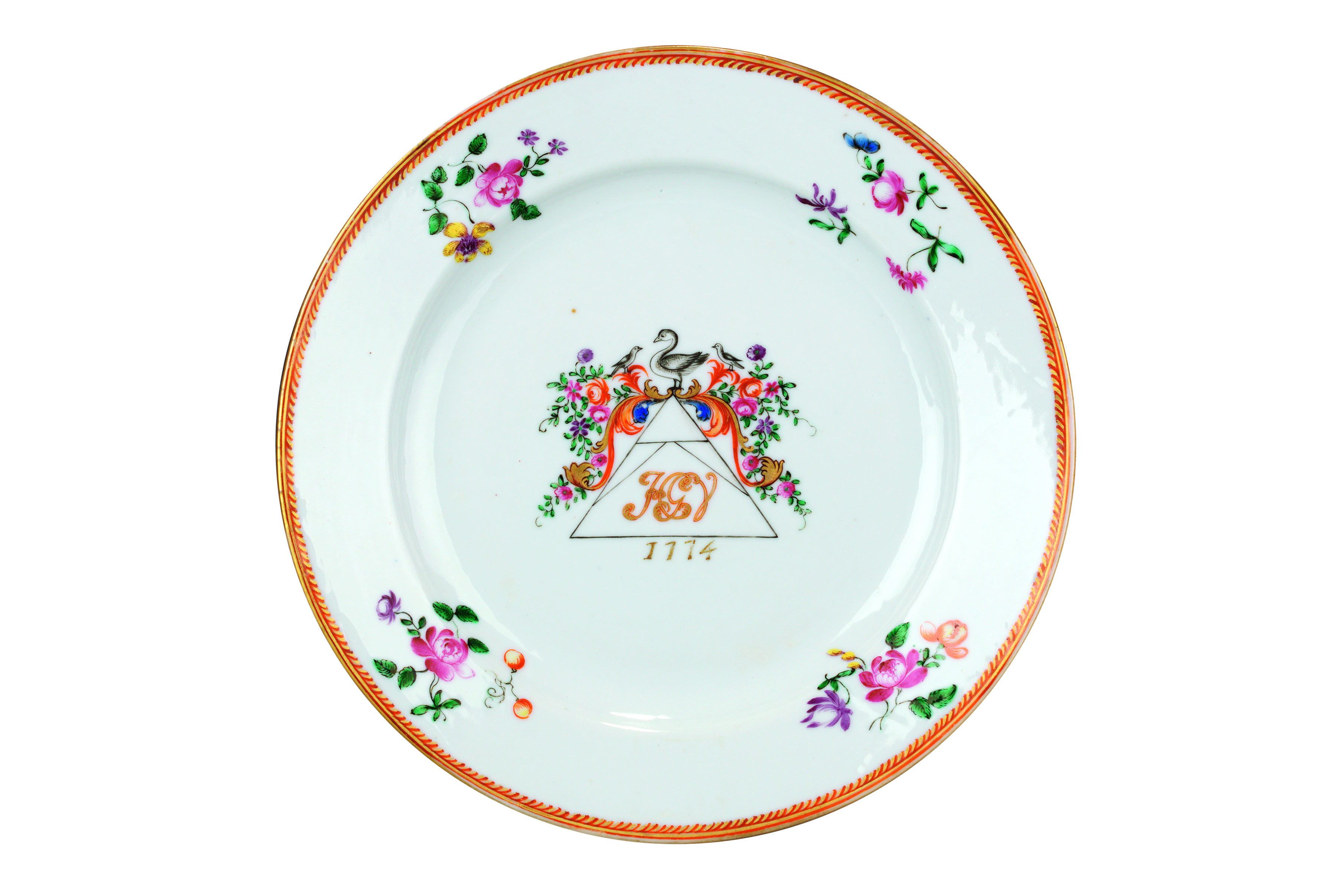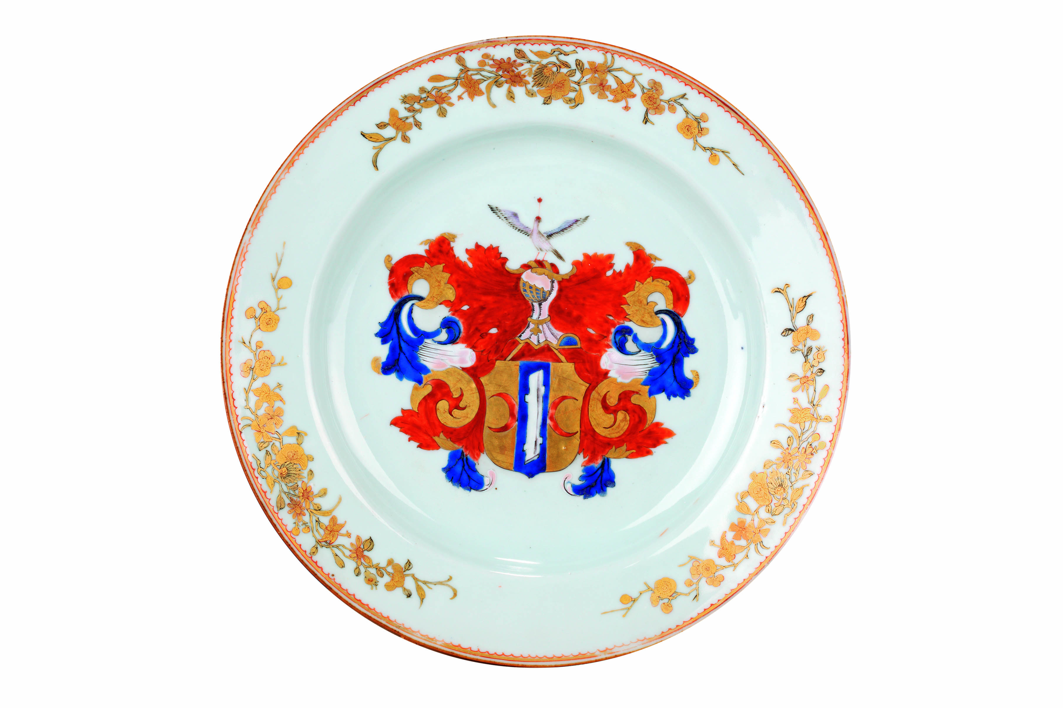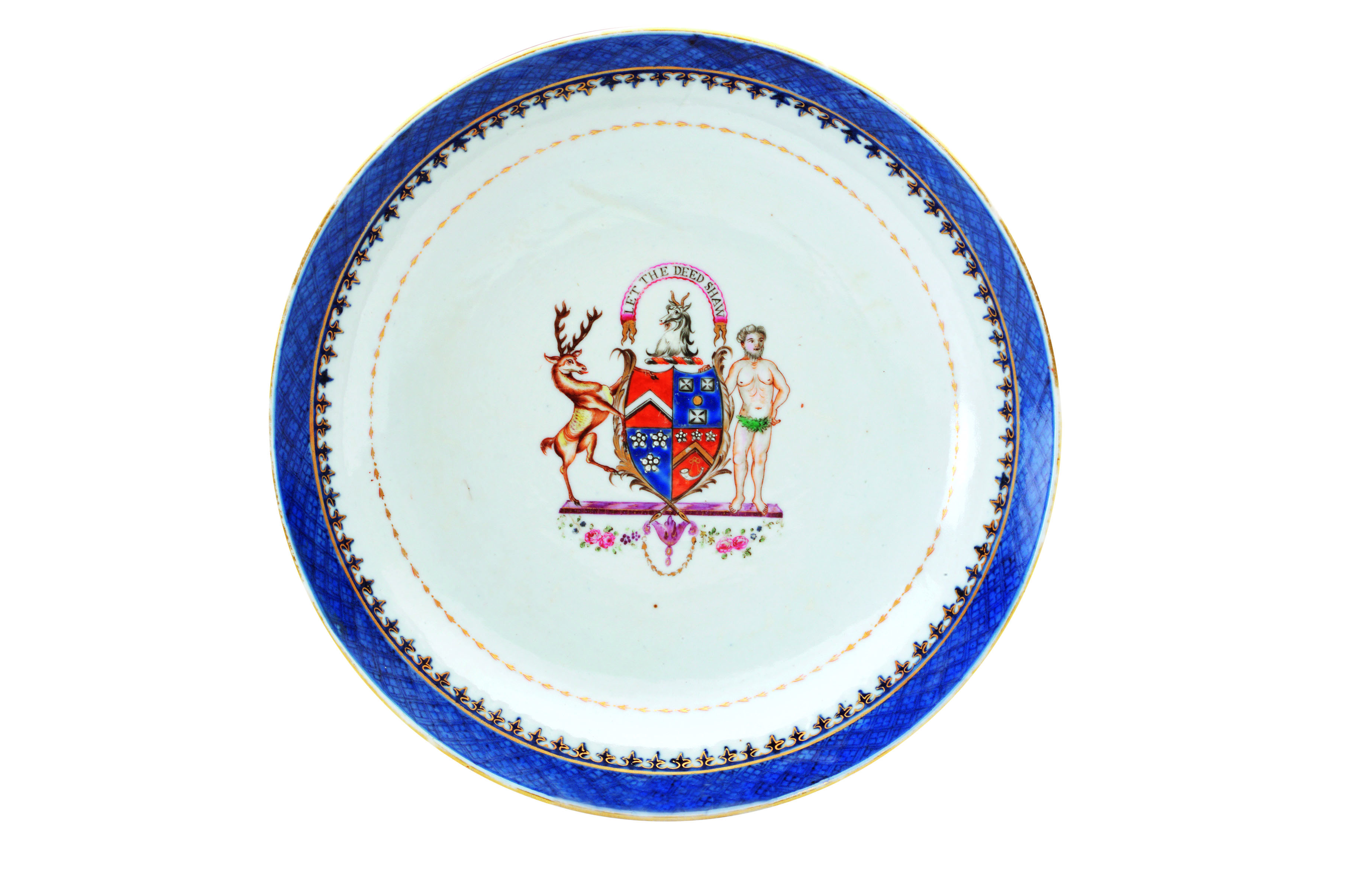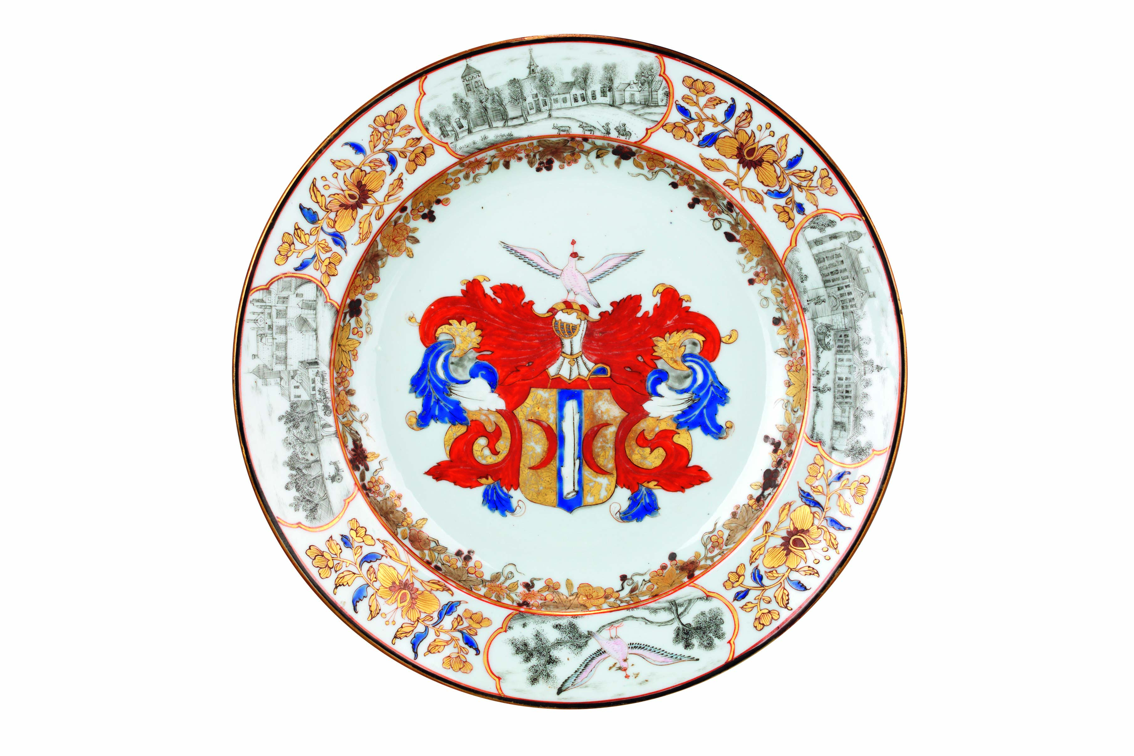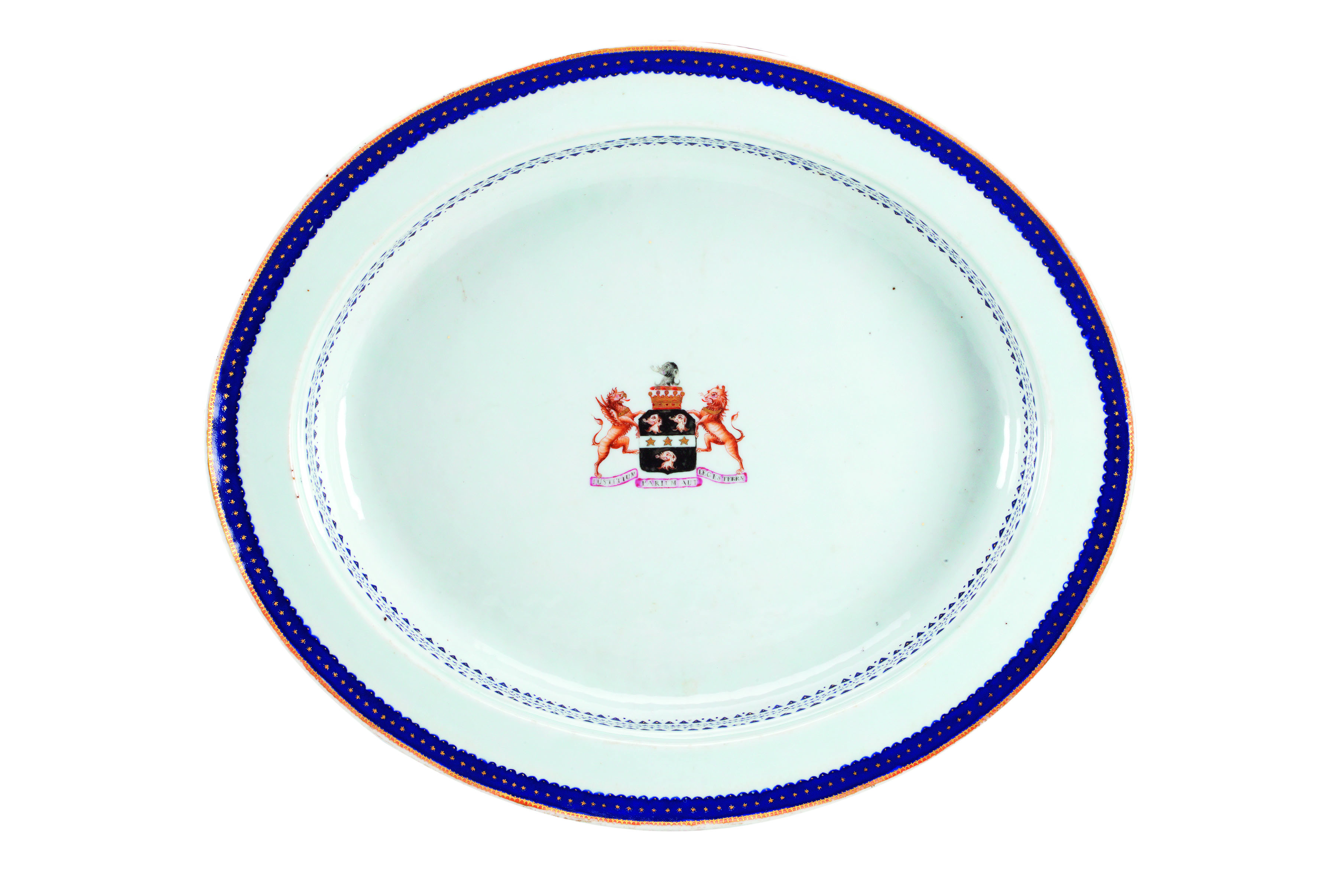 名称:清乾隆广彩徽章纹椭圆形大盘