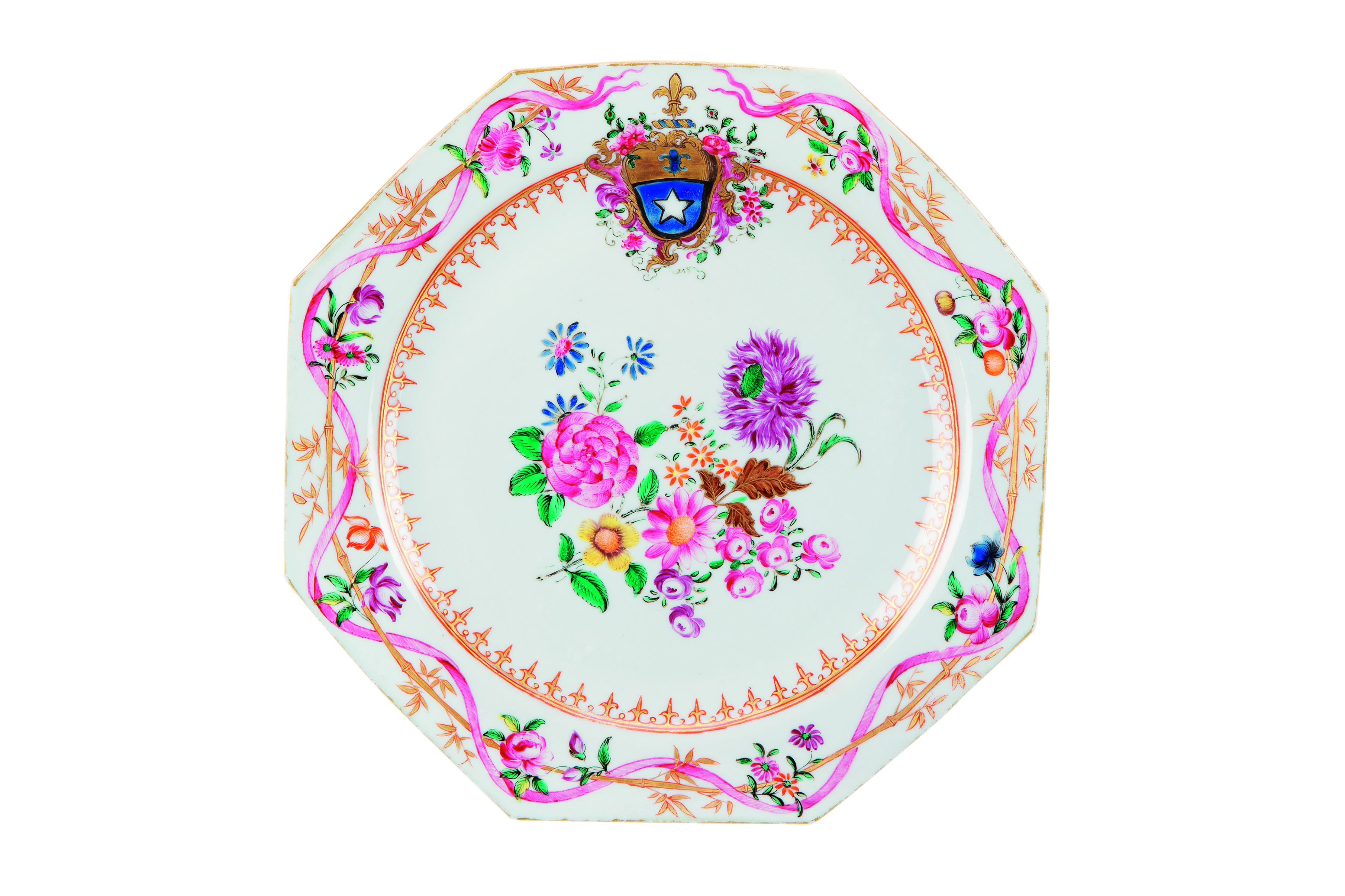 名称:清乾隆广彩Rogers纹章纹八角形盘