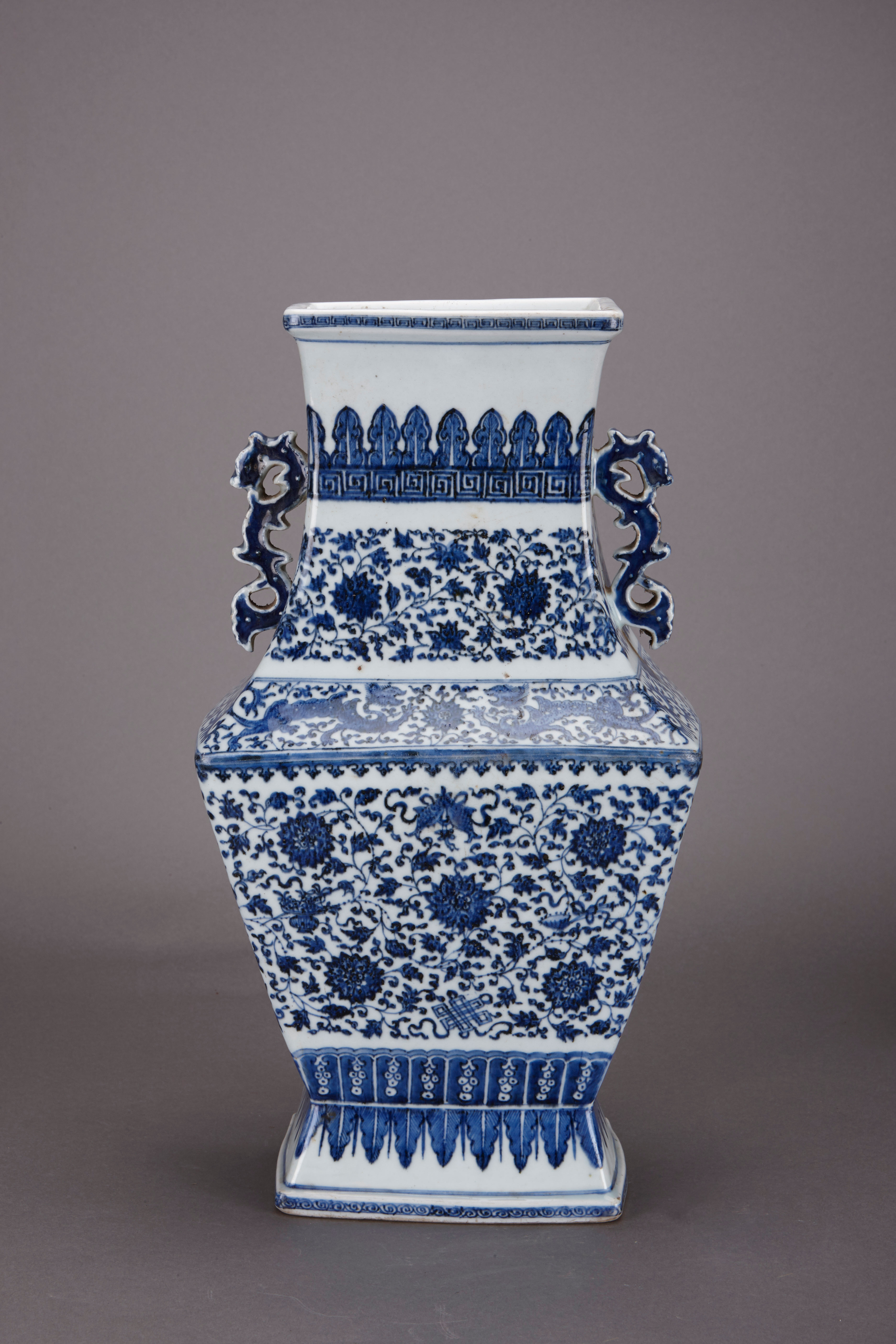 名称:清乾隆青花缠枝纹夔龙耳方瓶