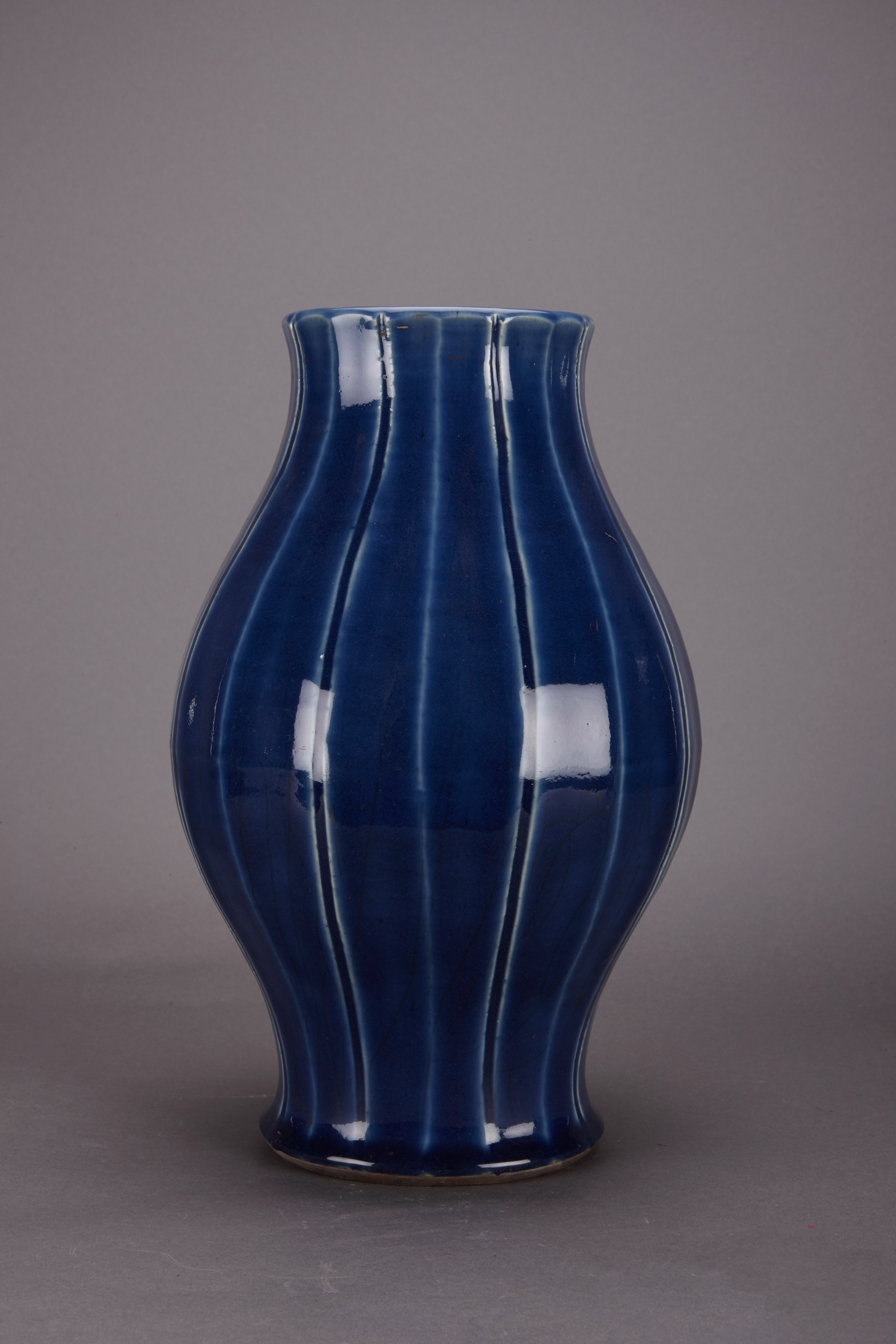 名称:清乾隆蓝釉橄榄瓶